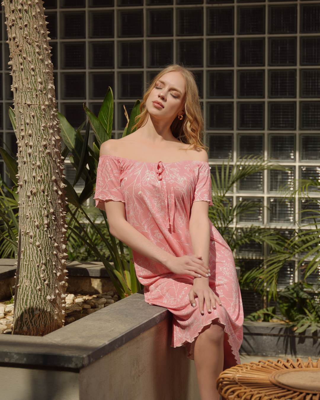 قميص حريمي نص كم استك روتاري الفروع فسكوز قصير