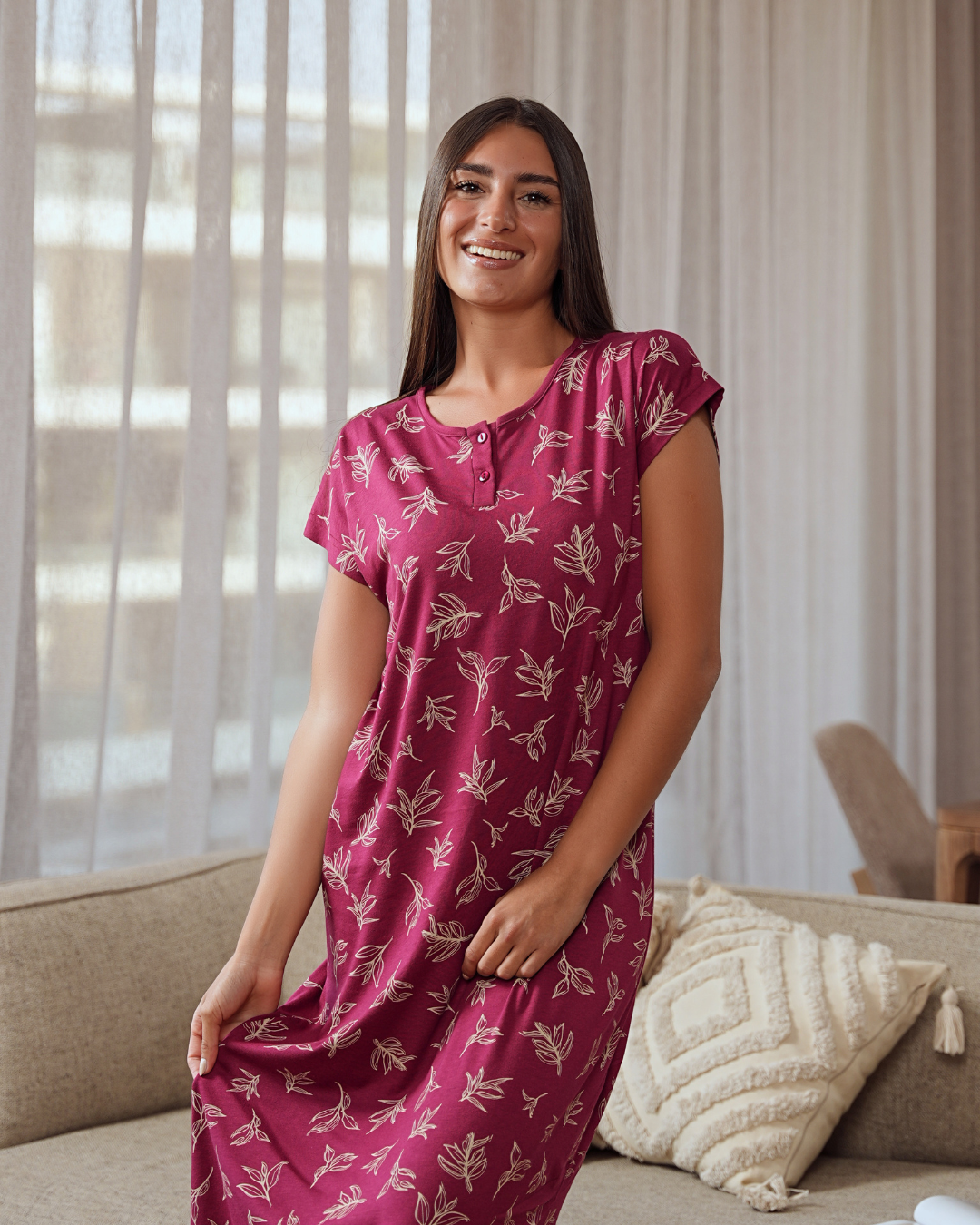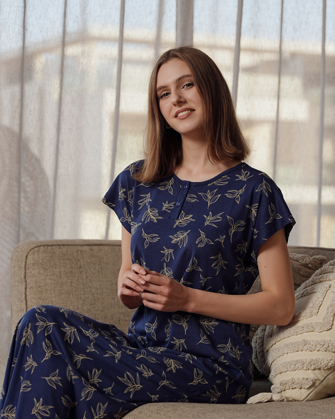 قميص حريمي نص كم مطبوع ورق الشجر