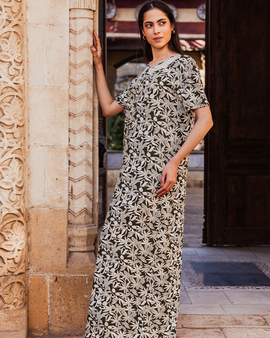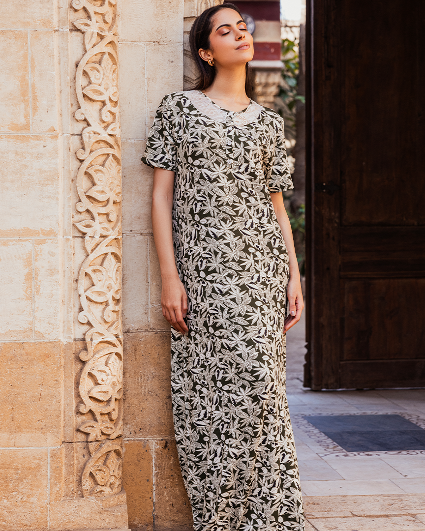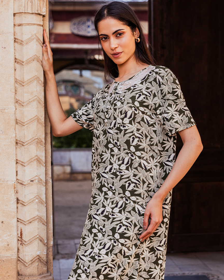قميص حريمي نص كم وردة زيتي قصة دانتيل
