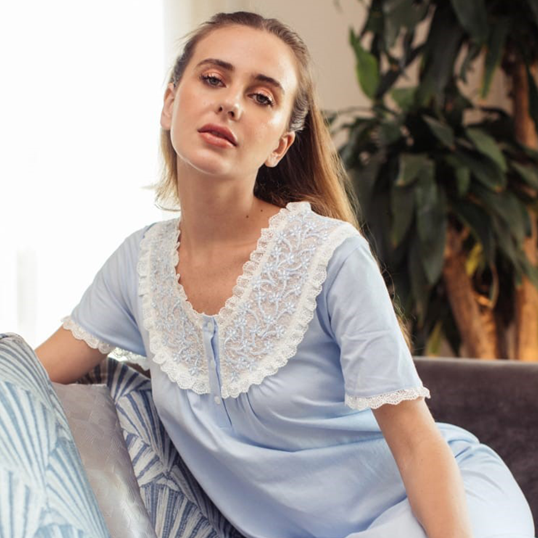 قميص نص كم بزراير ودانتيل علي الصدر (نتاشا)