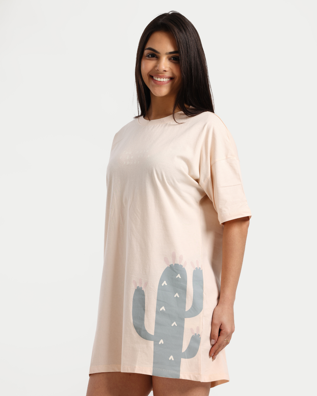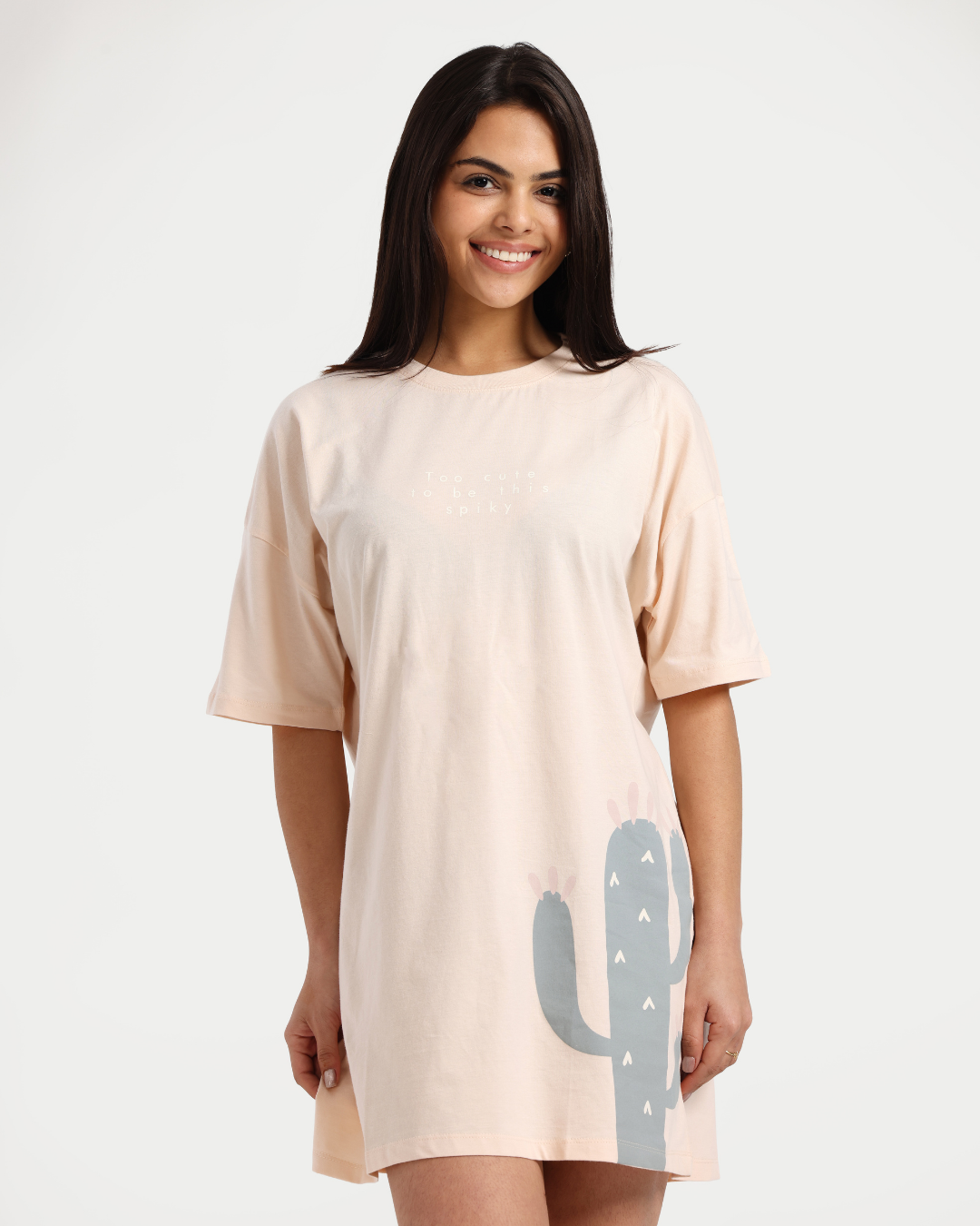 قميص نوم نسائي بطبعة الصبار الوردي الناعم