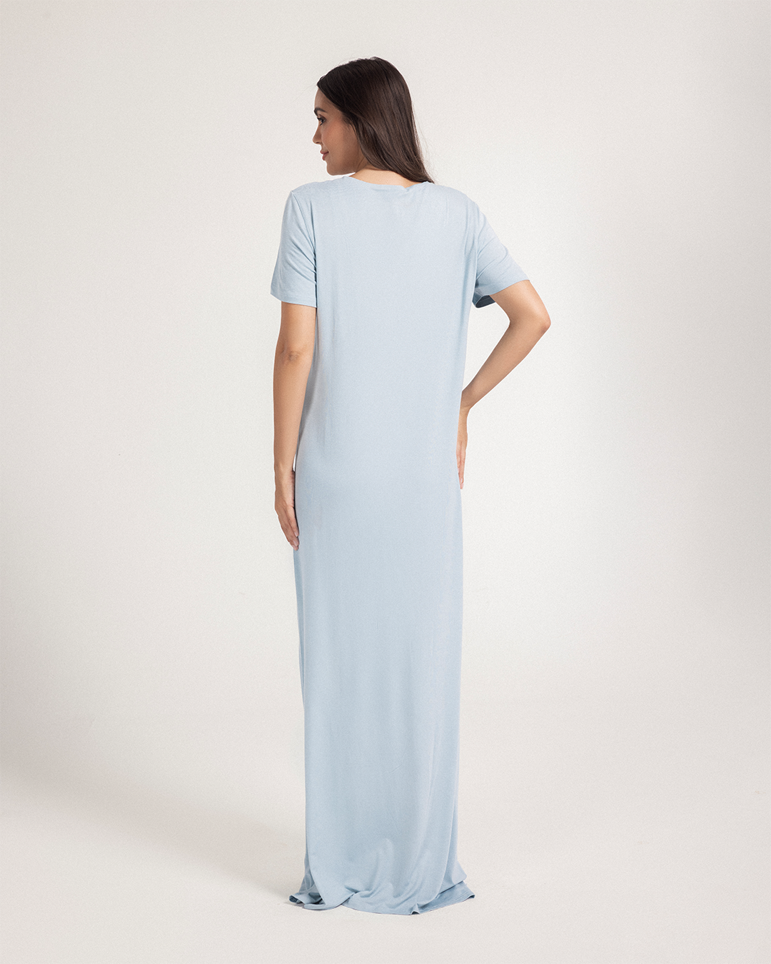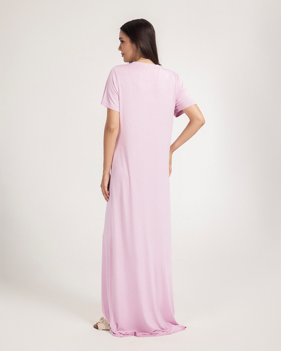 نايت شيرت طويلة نصف كم تطريز باقة ورد