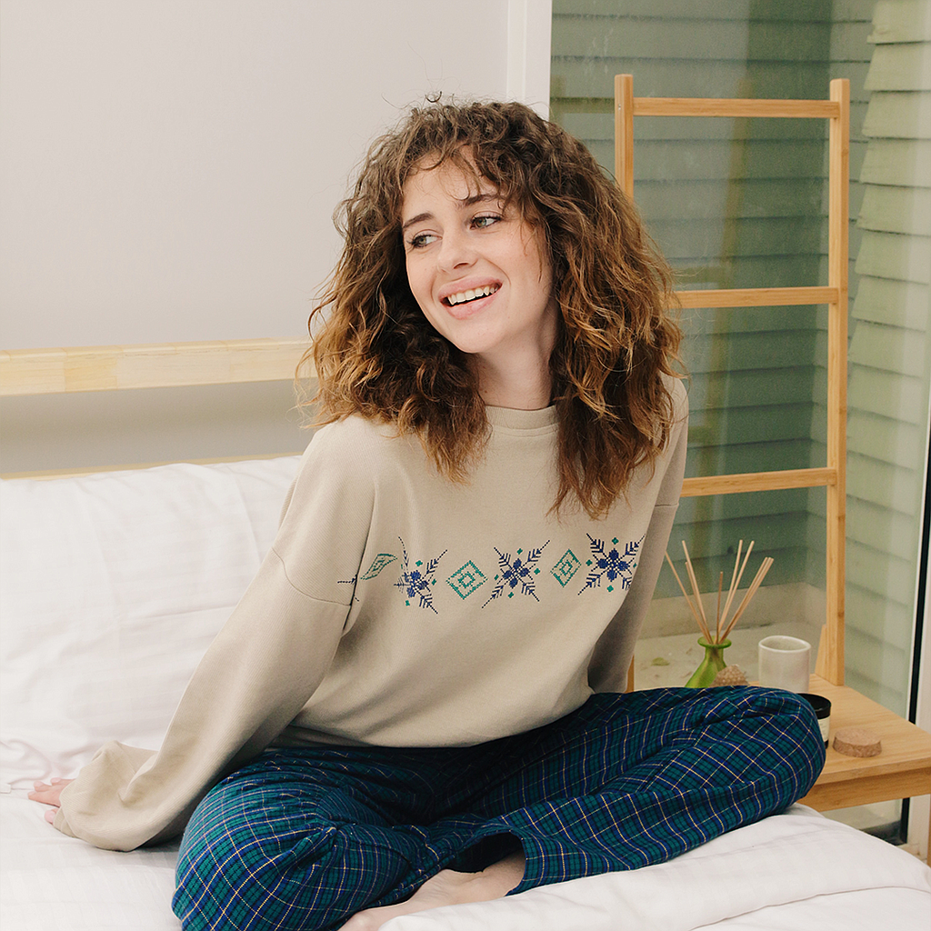 بيجاما راوند مطرزه علي الصدر بنطلون كاروه