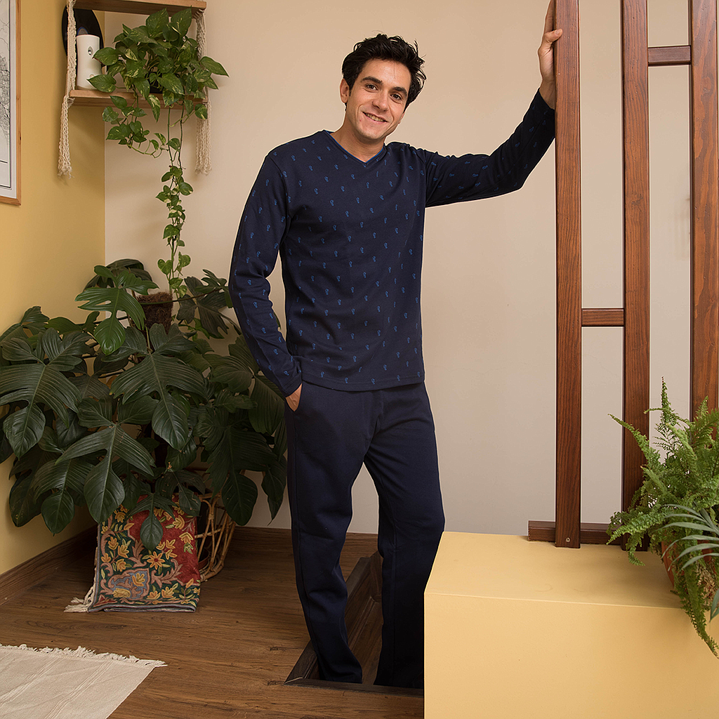 بيجاما رجالي كحلي مطبوع فرس النهر