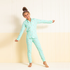 بيجاما وردة بزرار بنطلون بكم جارسونيه