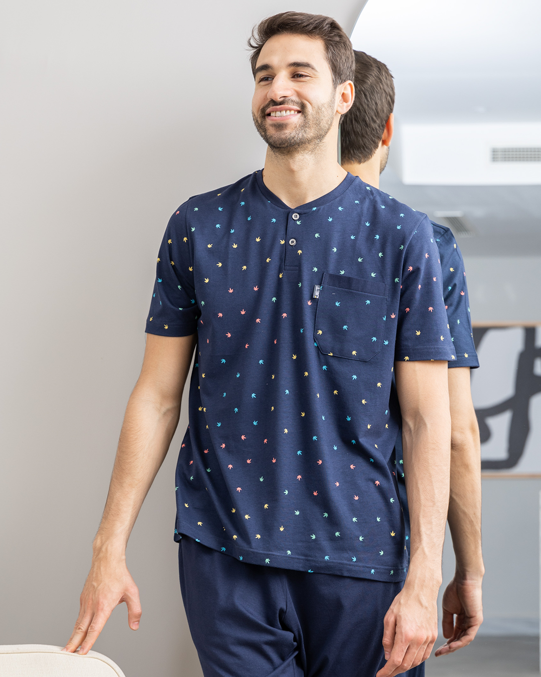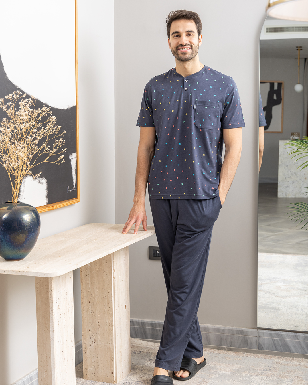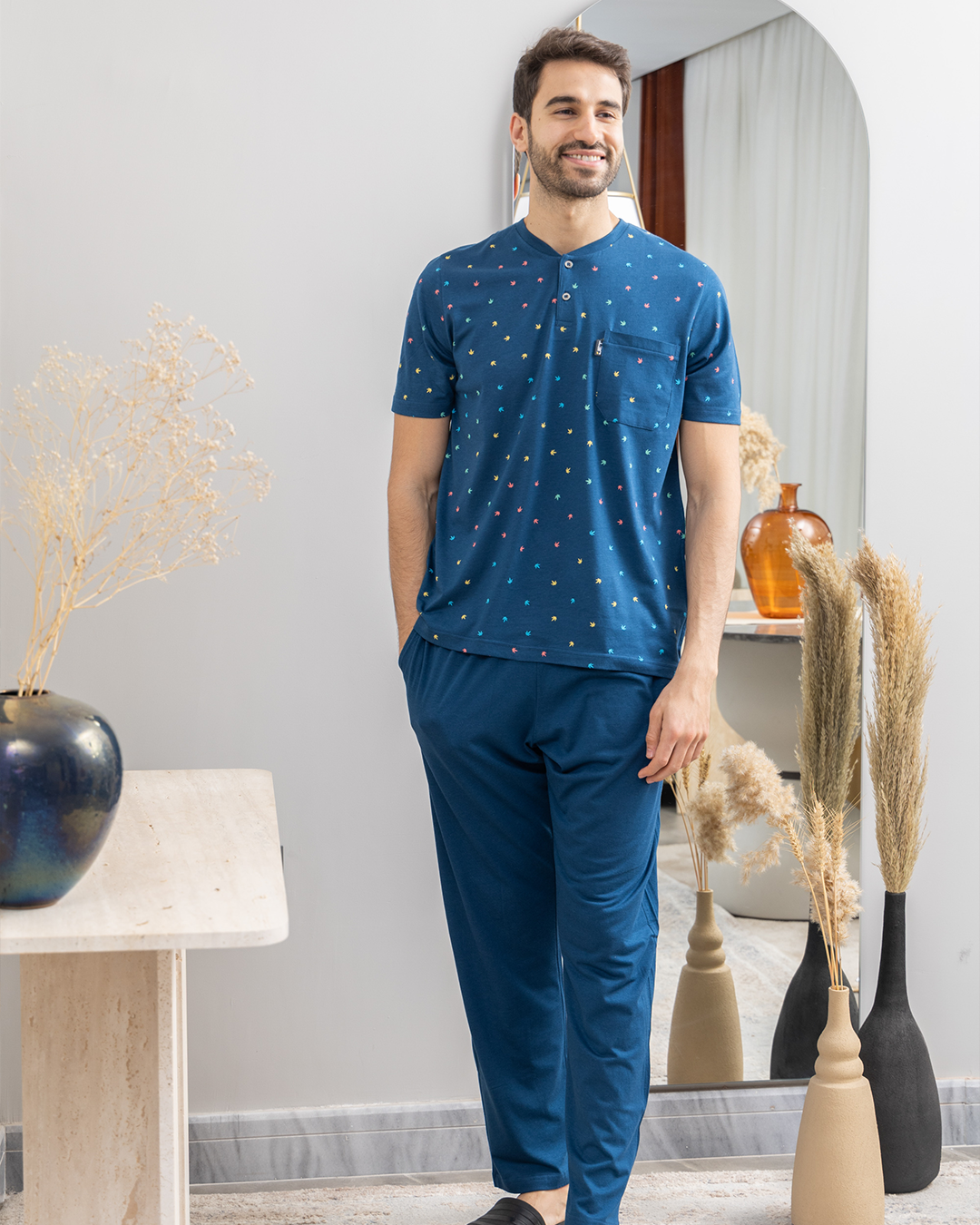 بيجامه رجالي راوند برزاير بنطلون جيب عالصدر ببنده