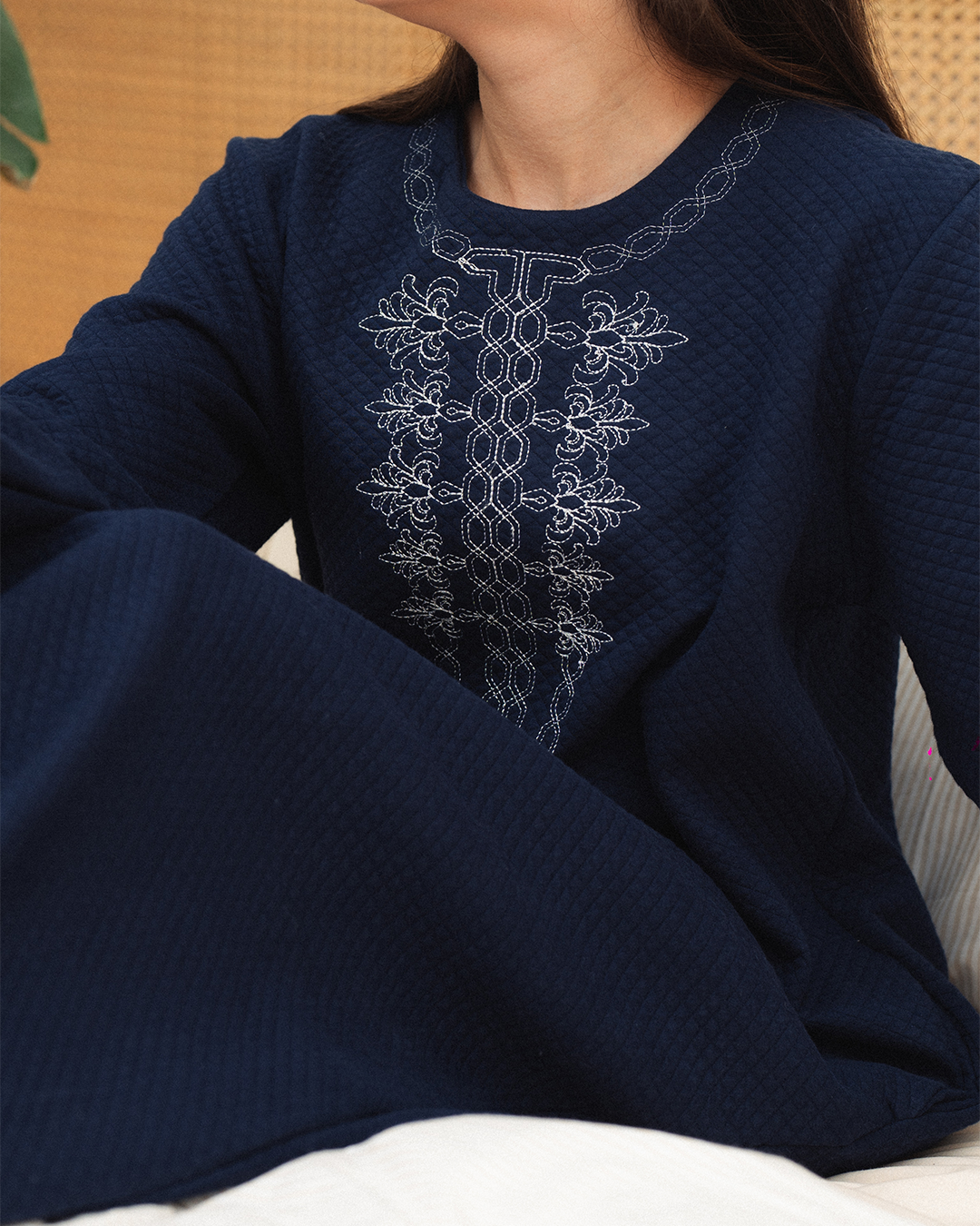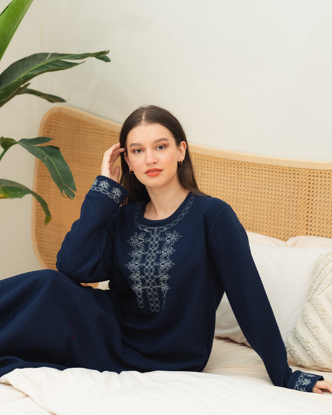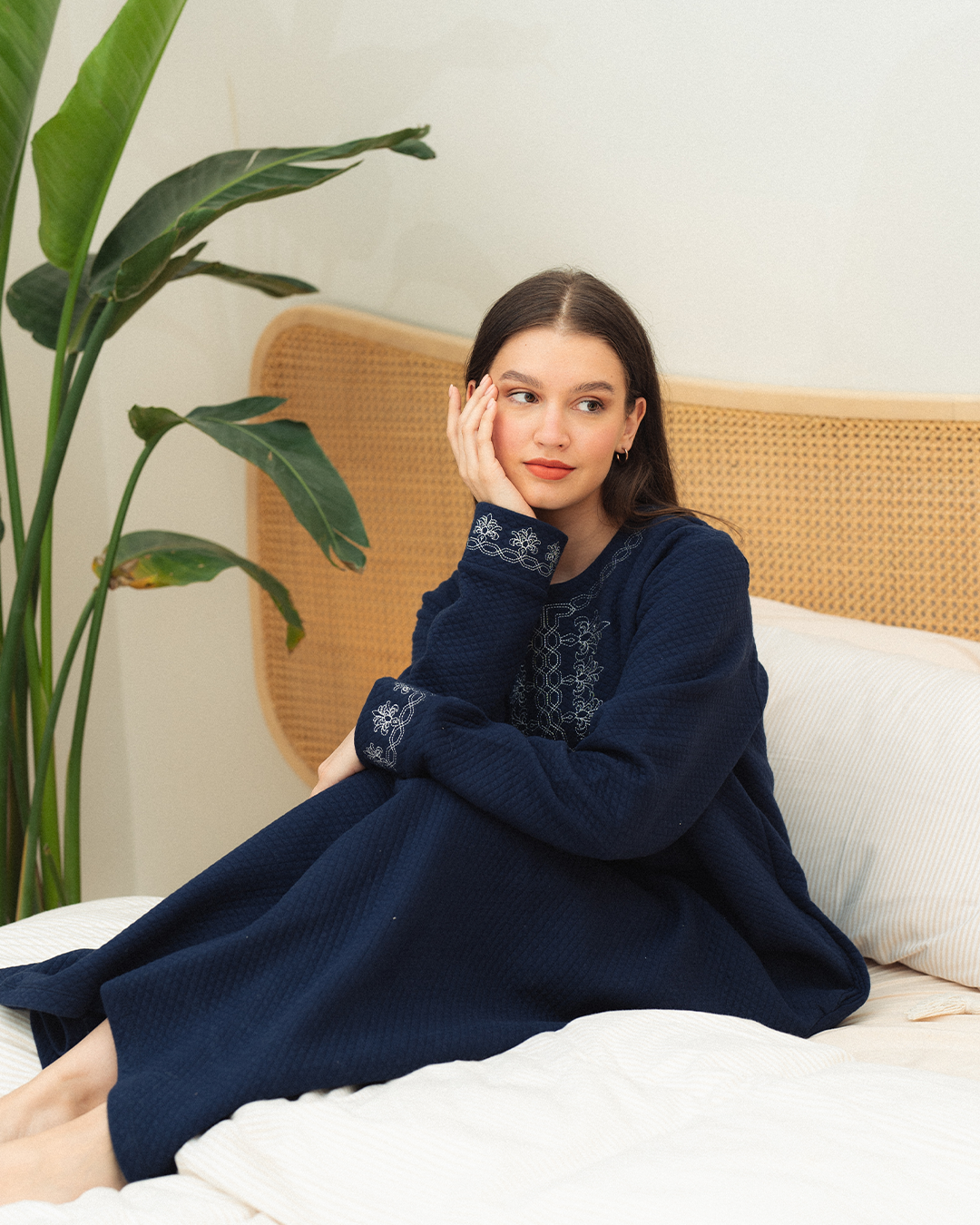 جلابية حريمي تطريز علي الصدر سادة كابوتنيه