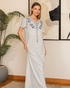 نايت شيرت طويلة نصف كم طباعة زجزاج تطريز ورد