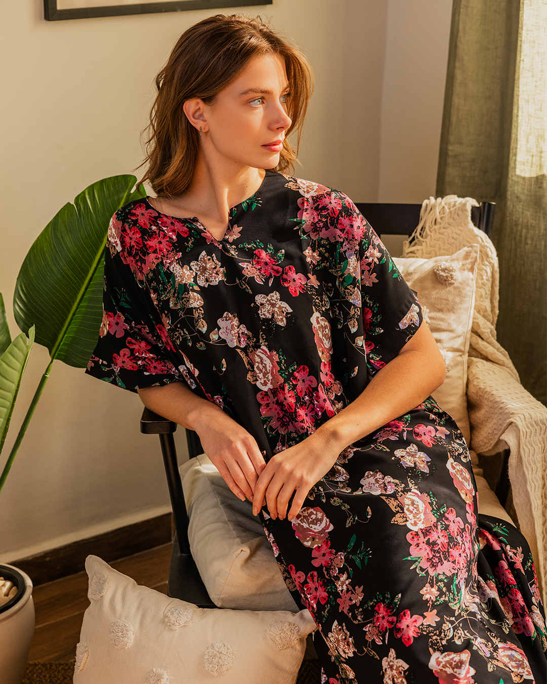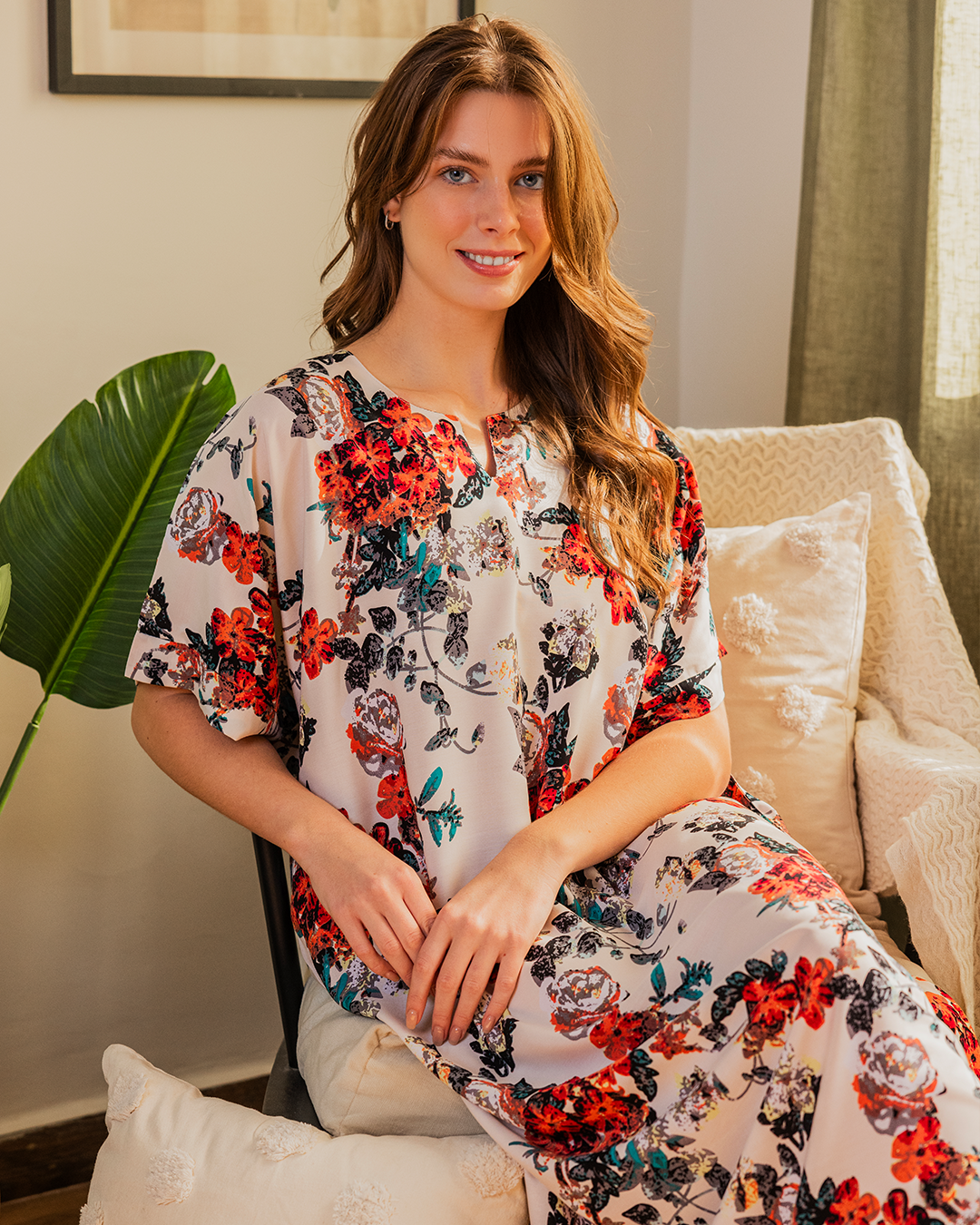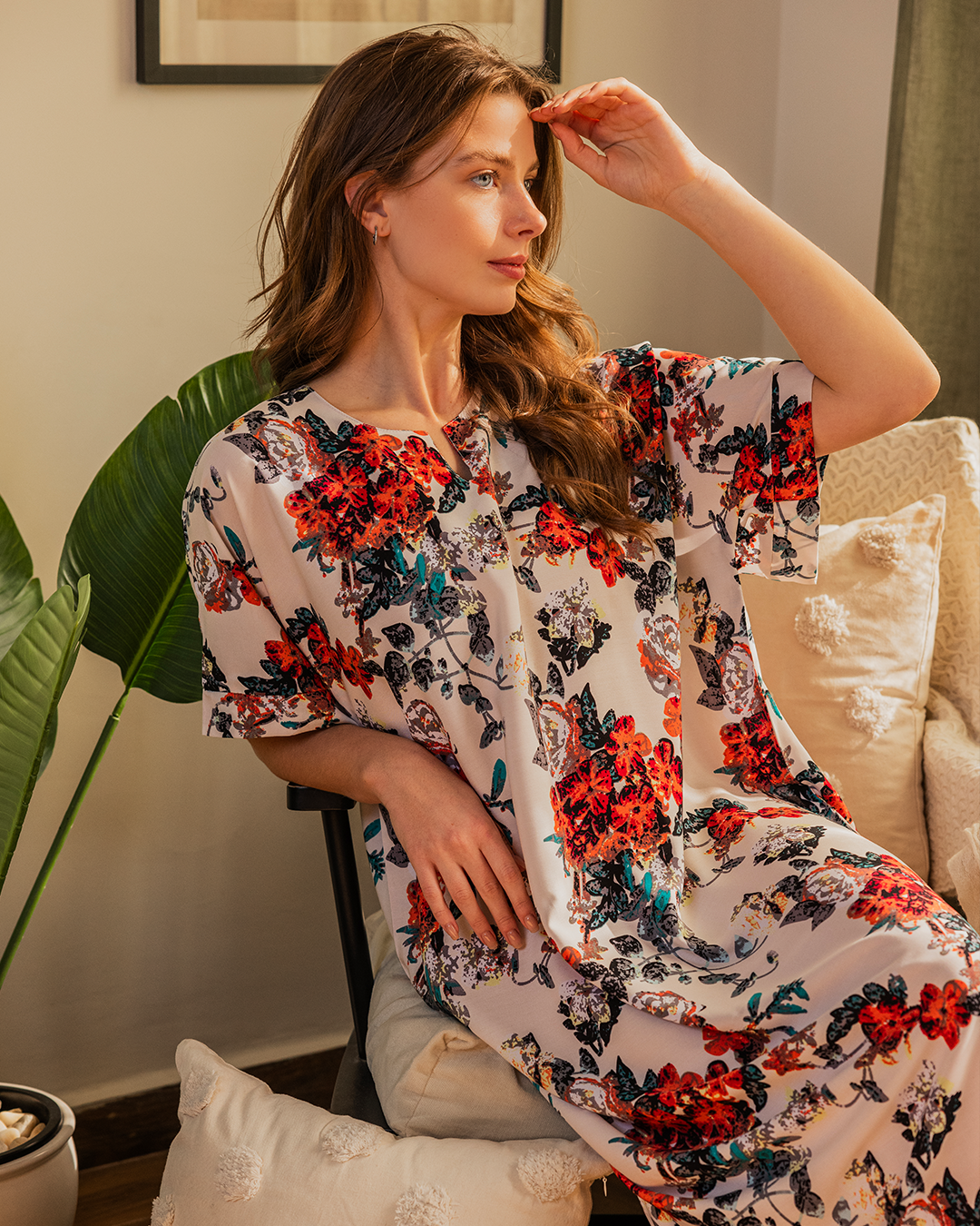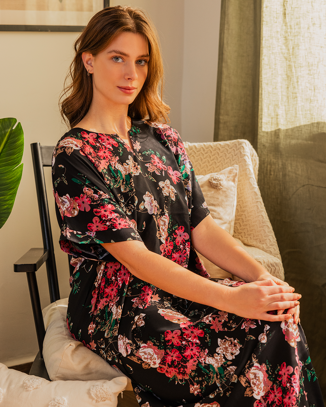142 قميص فسكوز نص كم مشجر