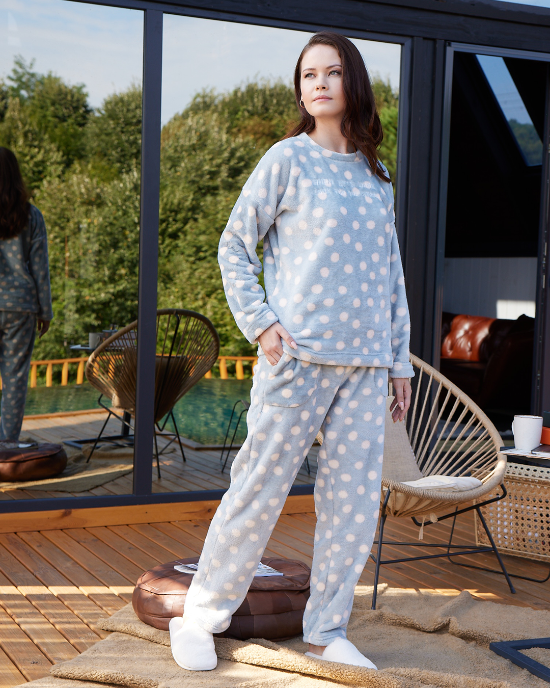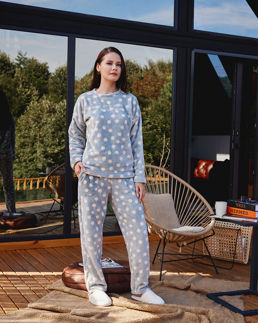 Bear بيجاما حريمي كُم طويل بولار مطبوع