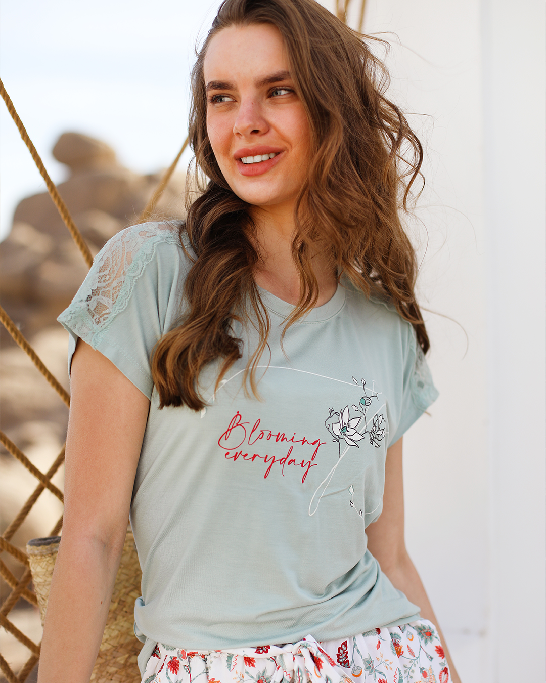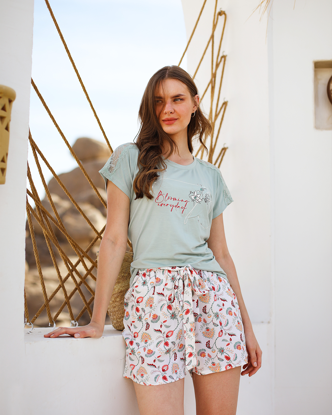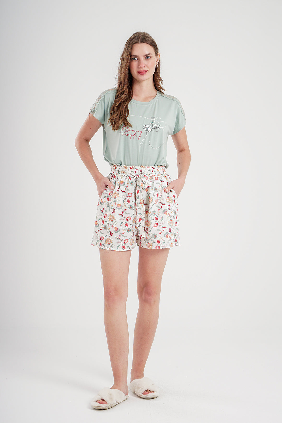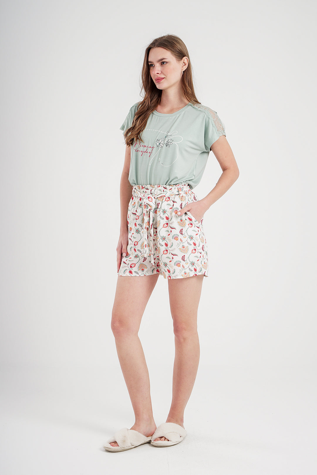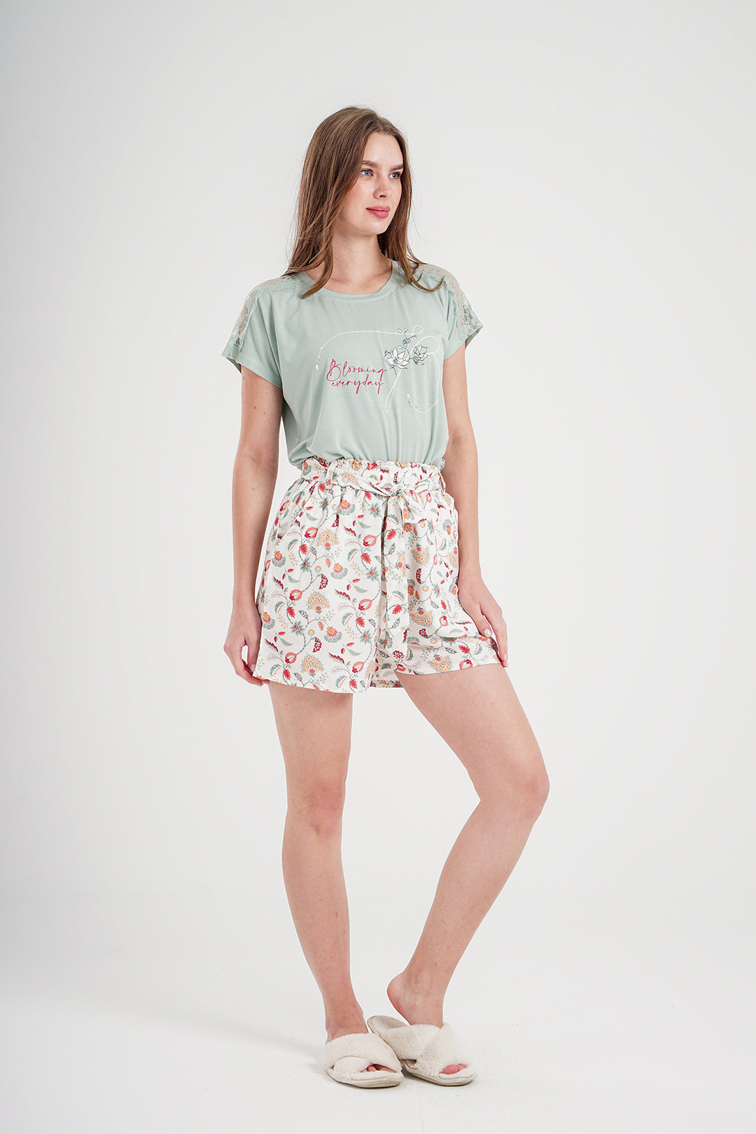 Blooming Everyday بيجاما حريمي شورت فسكوز مطبوع