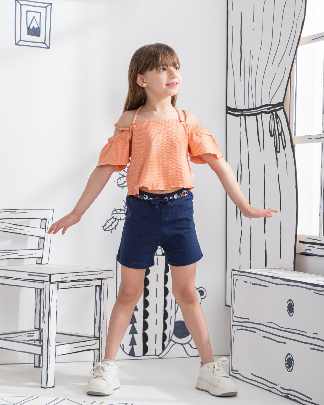 Blue Paisley بيجامه بناتي تيشرت كت وشورت مطبوع