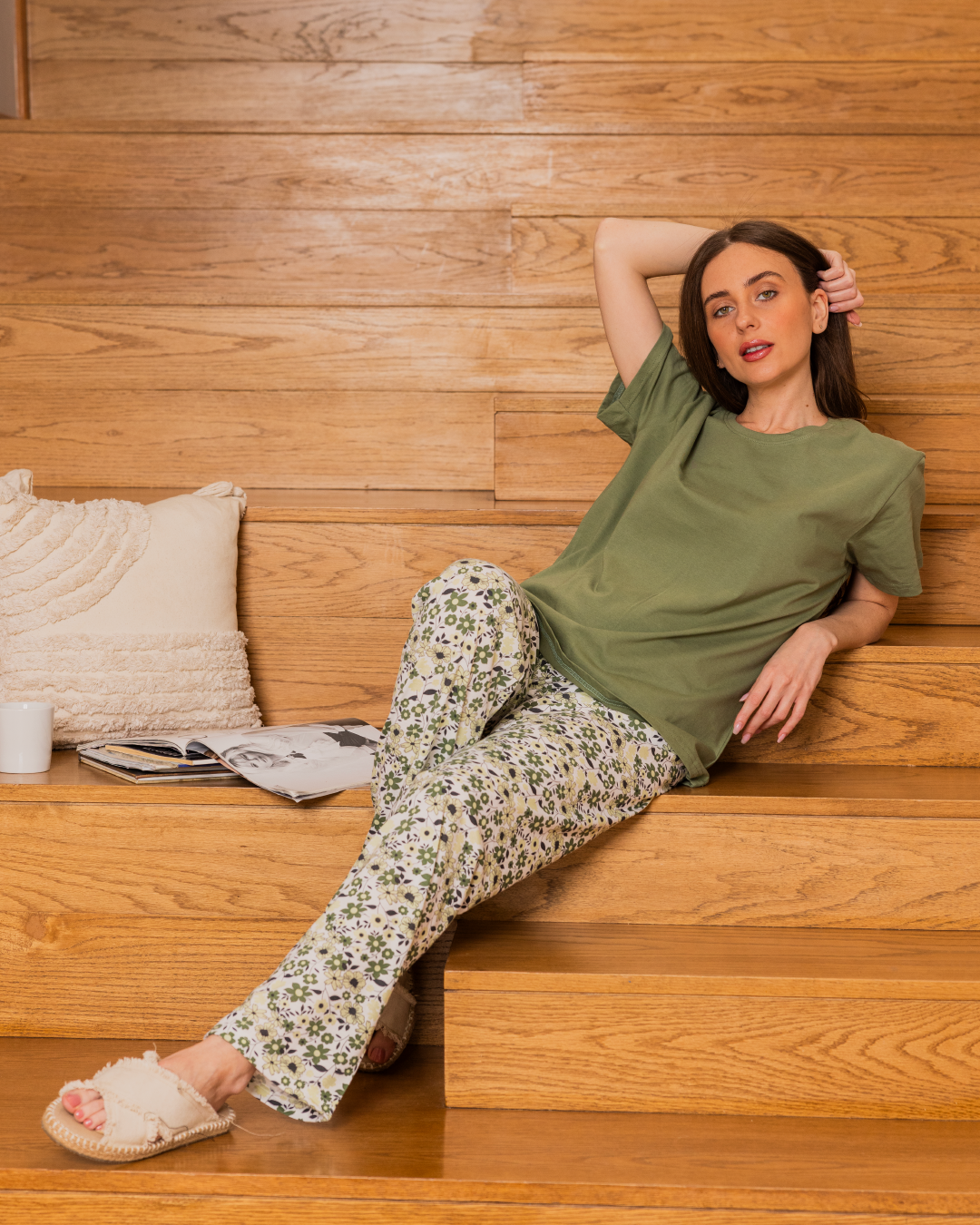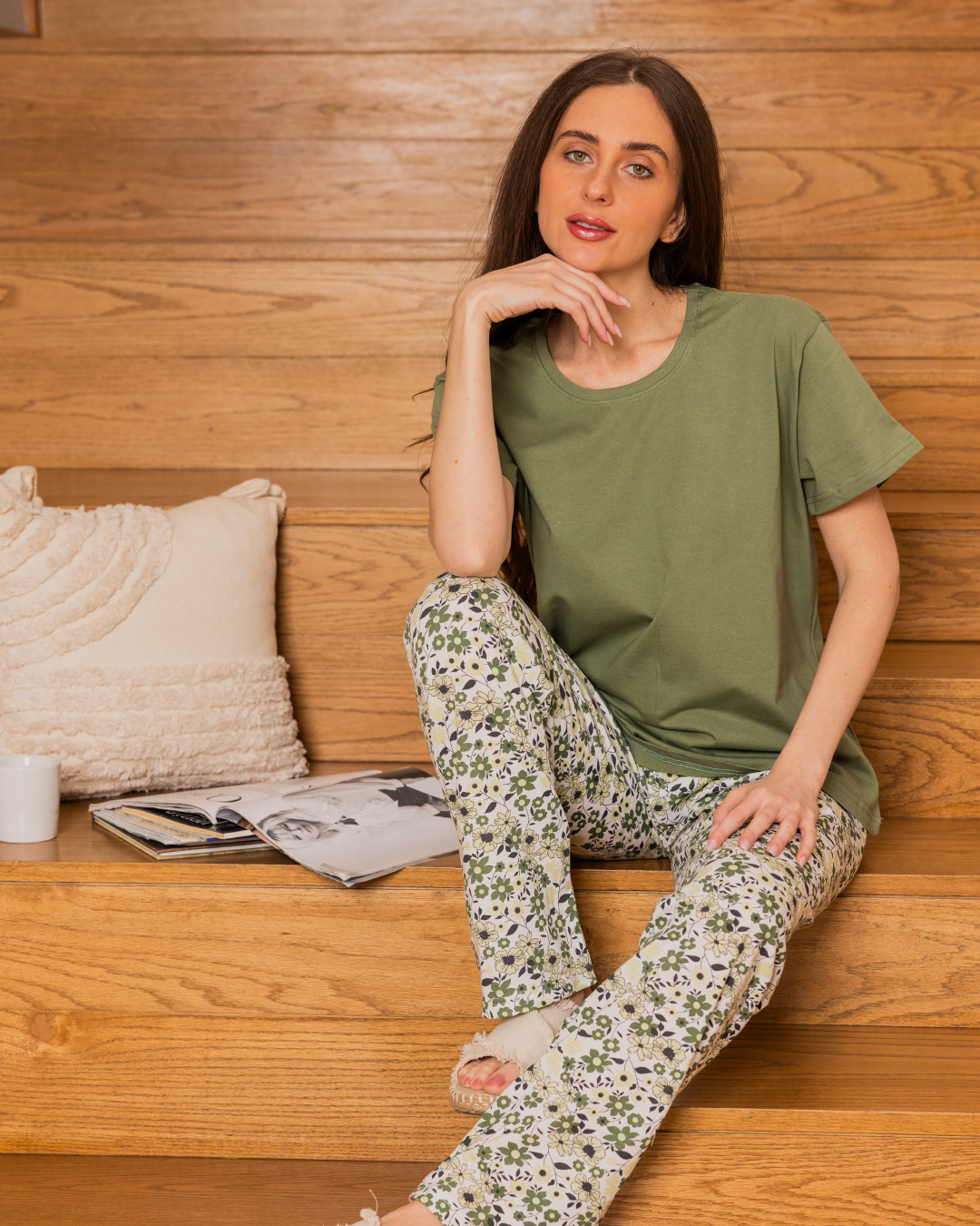 brimark بيجامه حريمي تيشرت نص كم وبنطلون منقوش