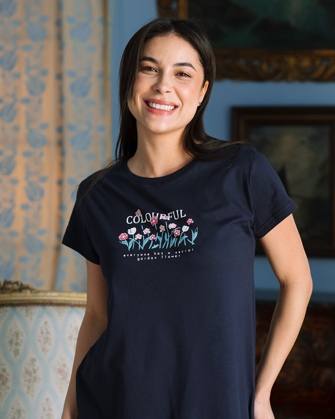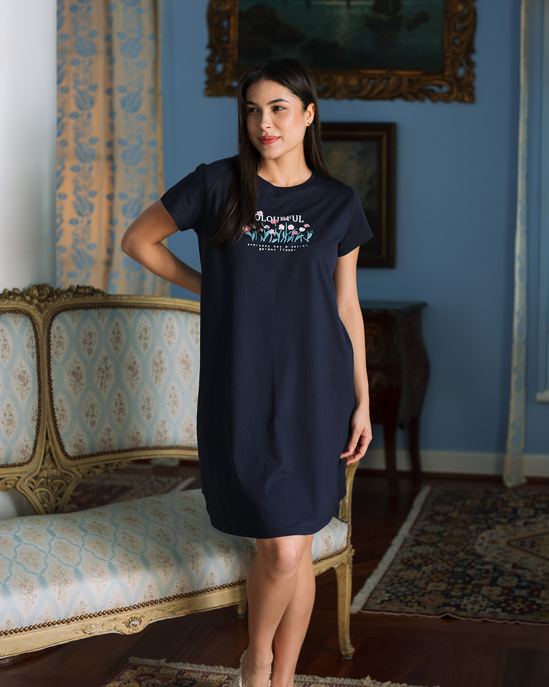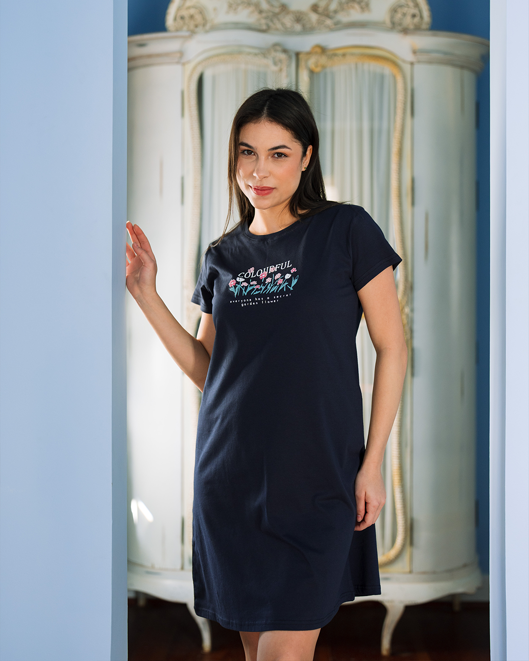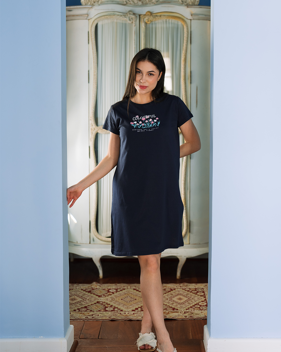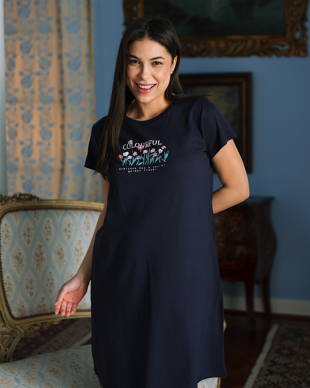 Colorful Flowers قميص نوم حريمي نص كم