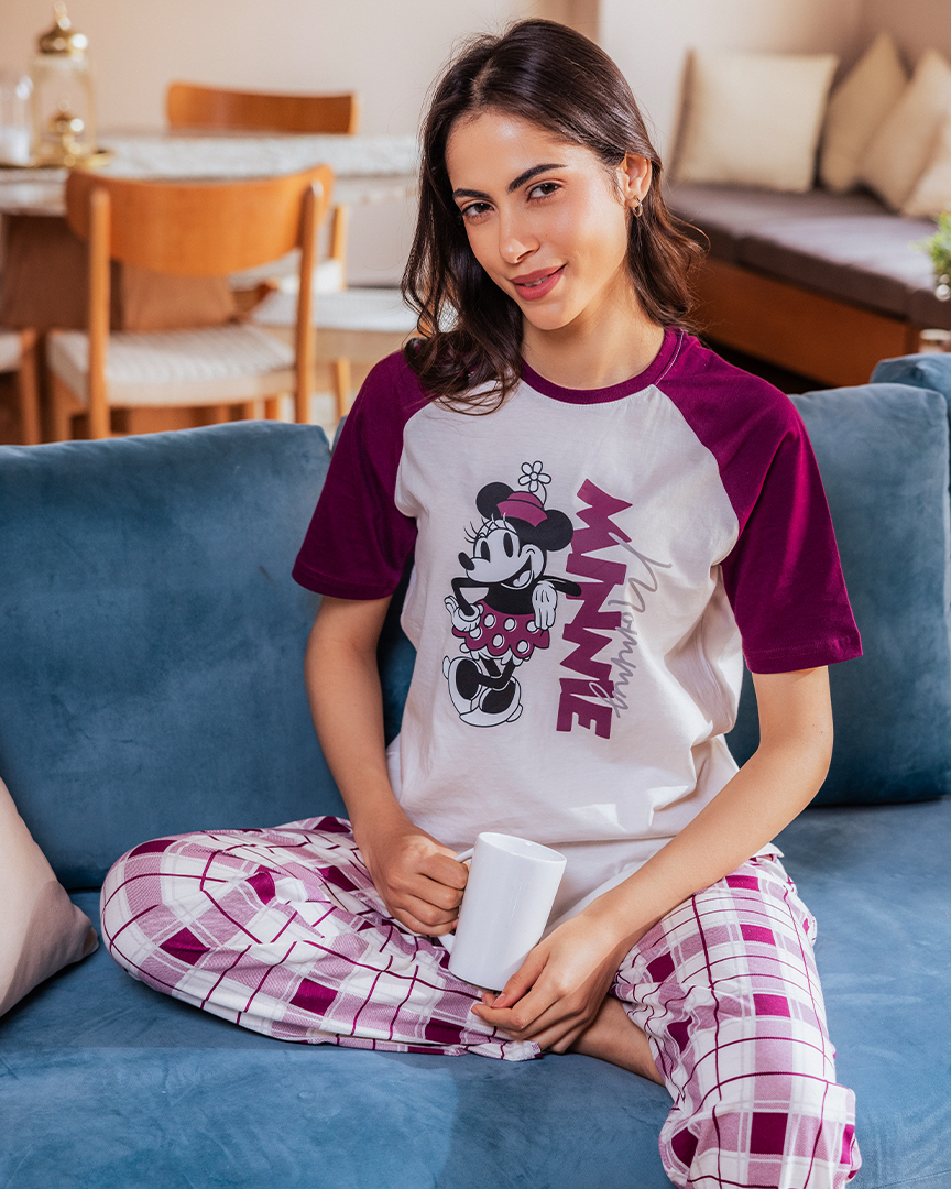 Family checkers بيجاما حريمي نص كم و بنطلون قطن