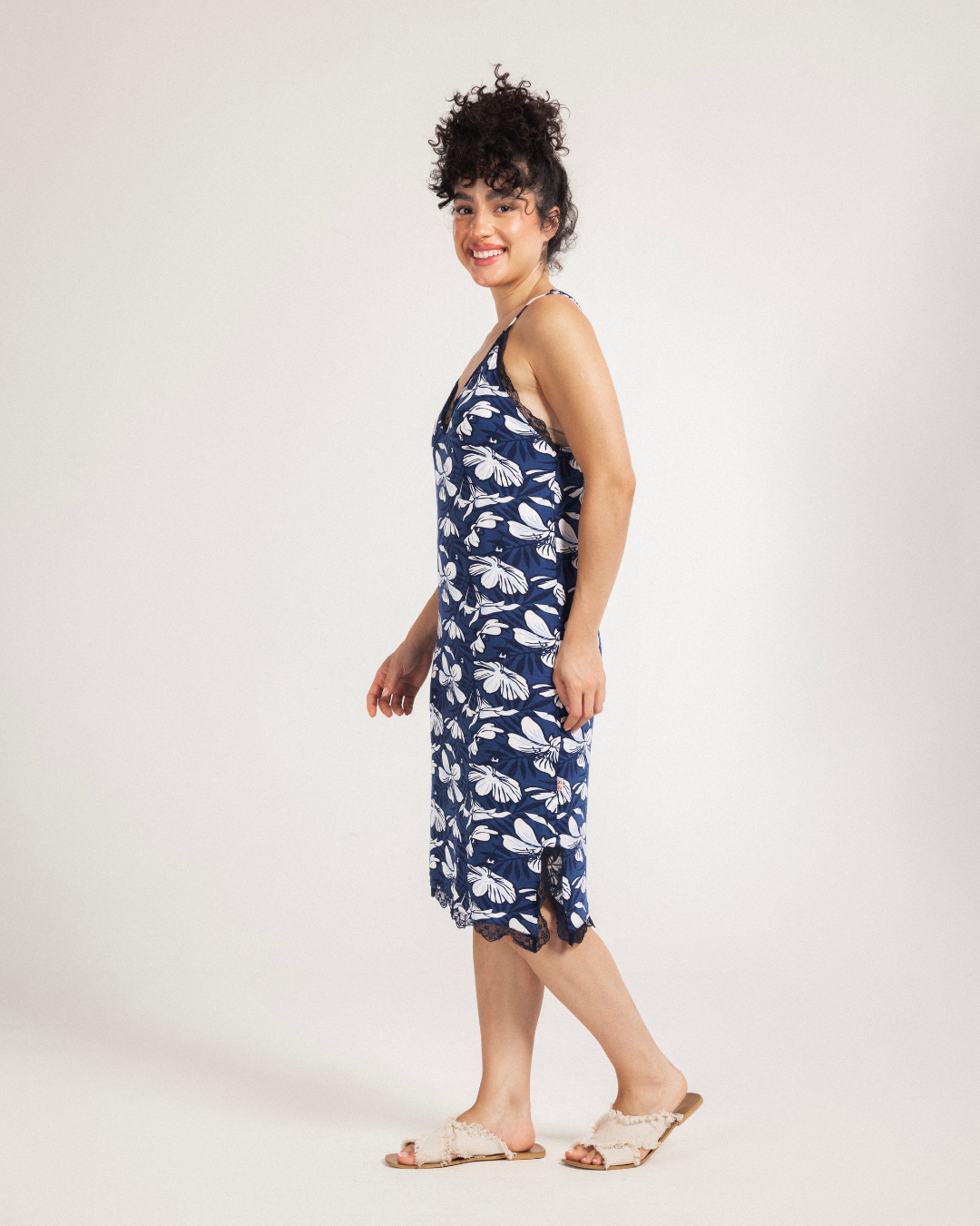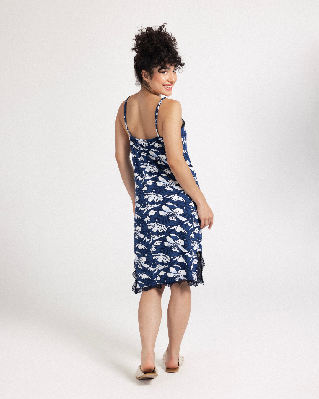 Femi florals قميص نوم حريمي فسكوز بدانتيل