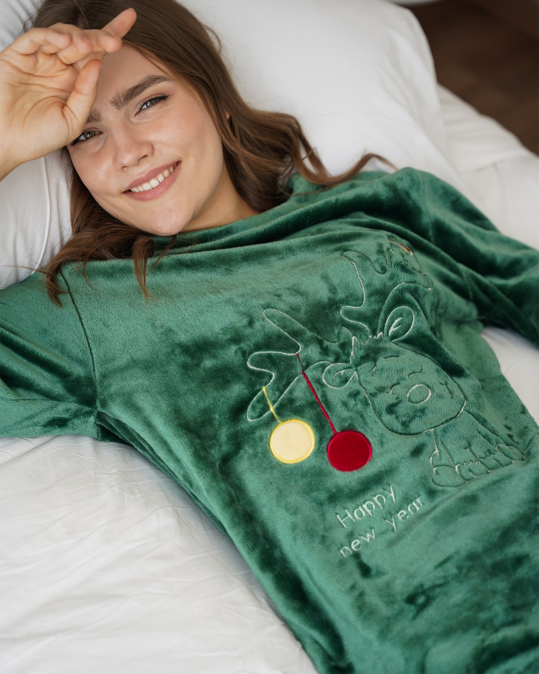 happy new year بيجامه حريمي دوران تطريز الغزاله بولار