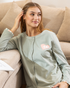 hearts بيجامه حريمي كم طويل فتح ازرار طباعة وتطريز قلوب