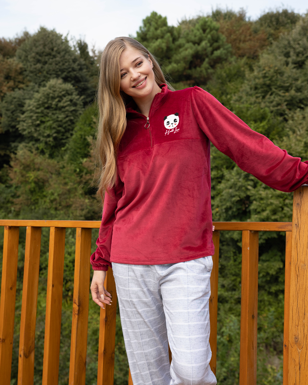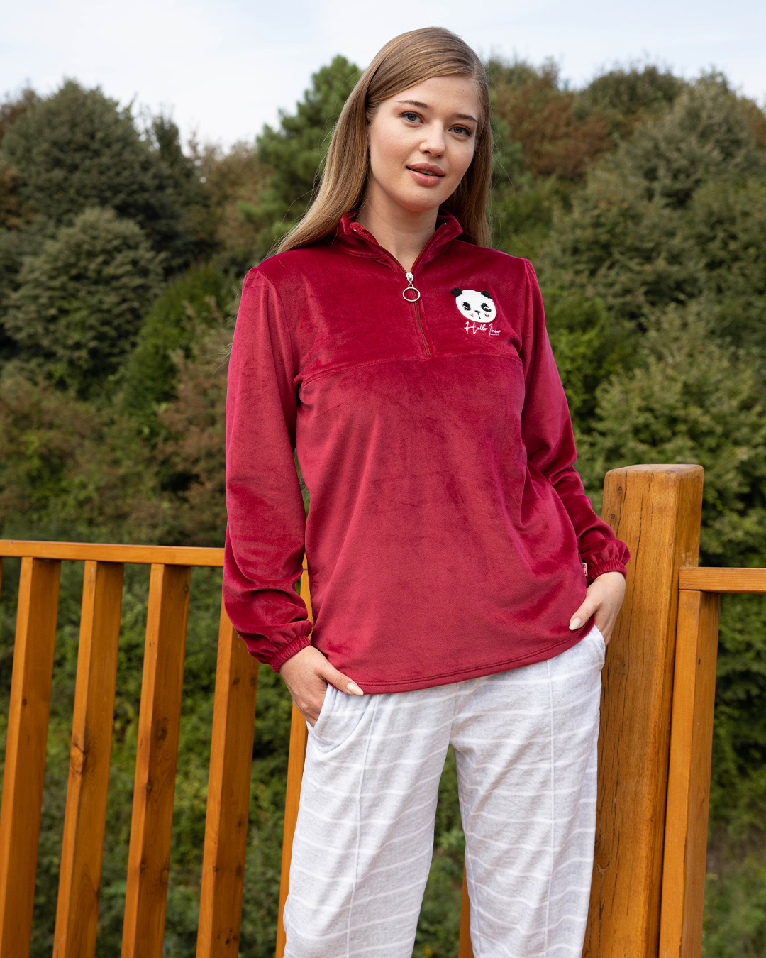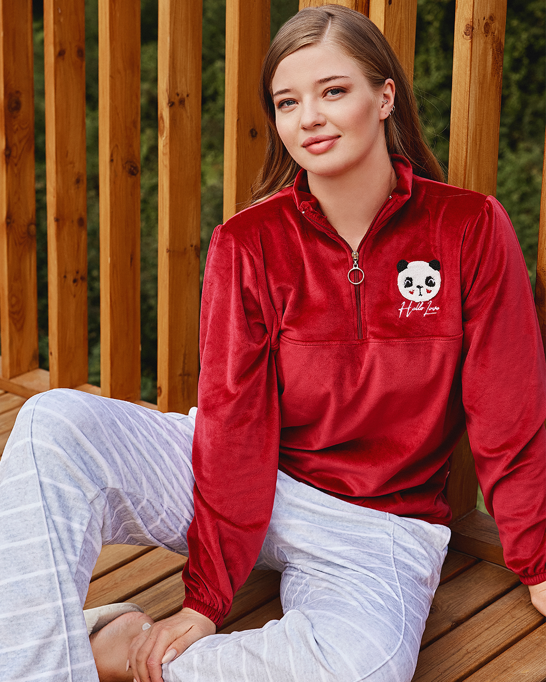 Hello Love بيجاما حريمي نص سوستة قطيفة بوليستر
