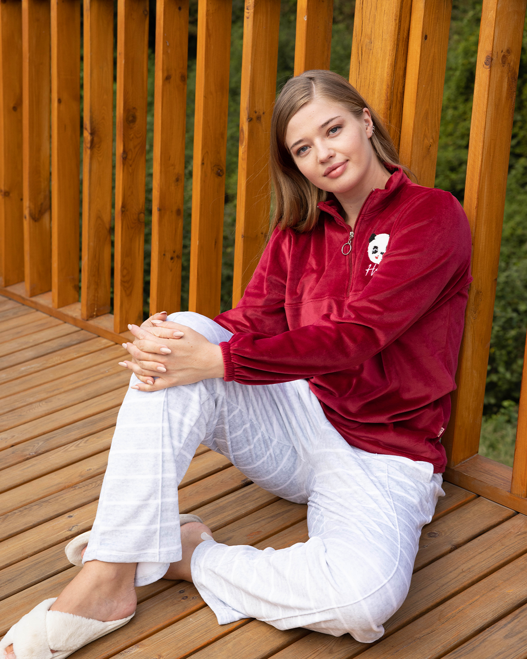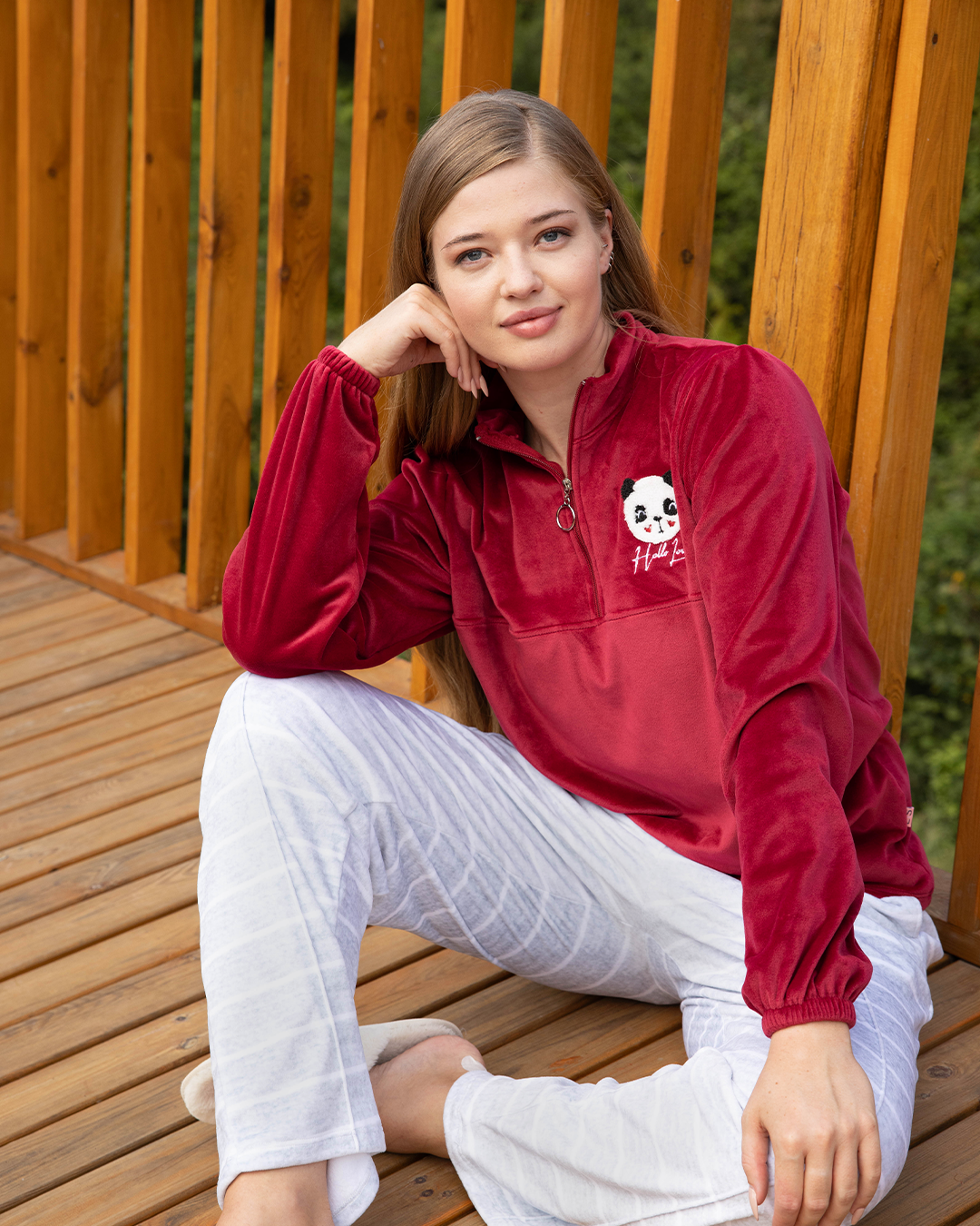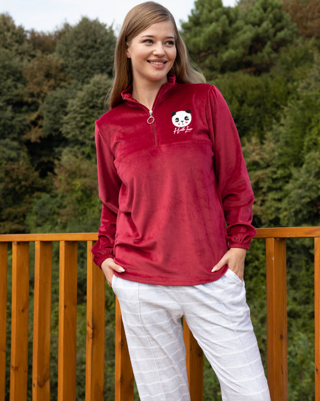 Hello Love بيجاما حريمي نص سوستة قطيفة بوليستر