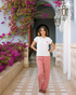 بيجاما بنطلون قطن مع توب نص كم عسل