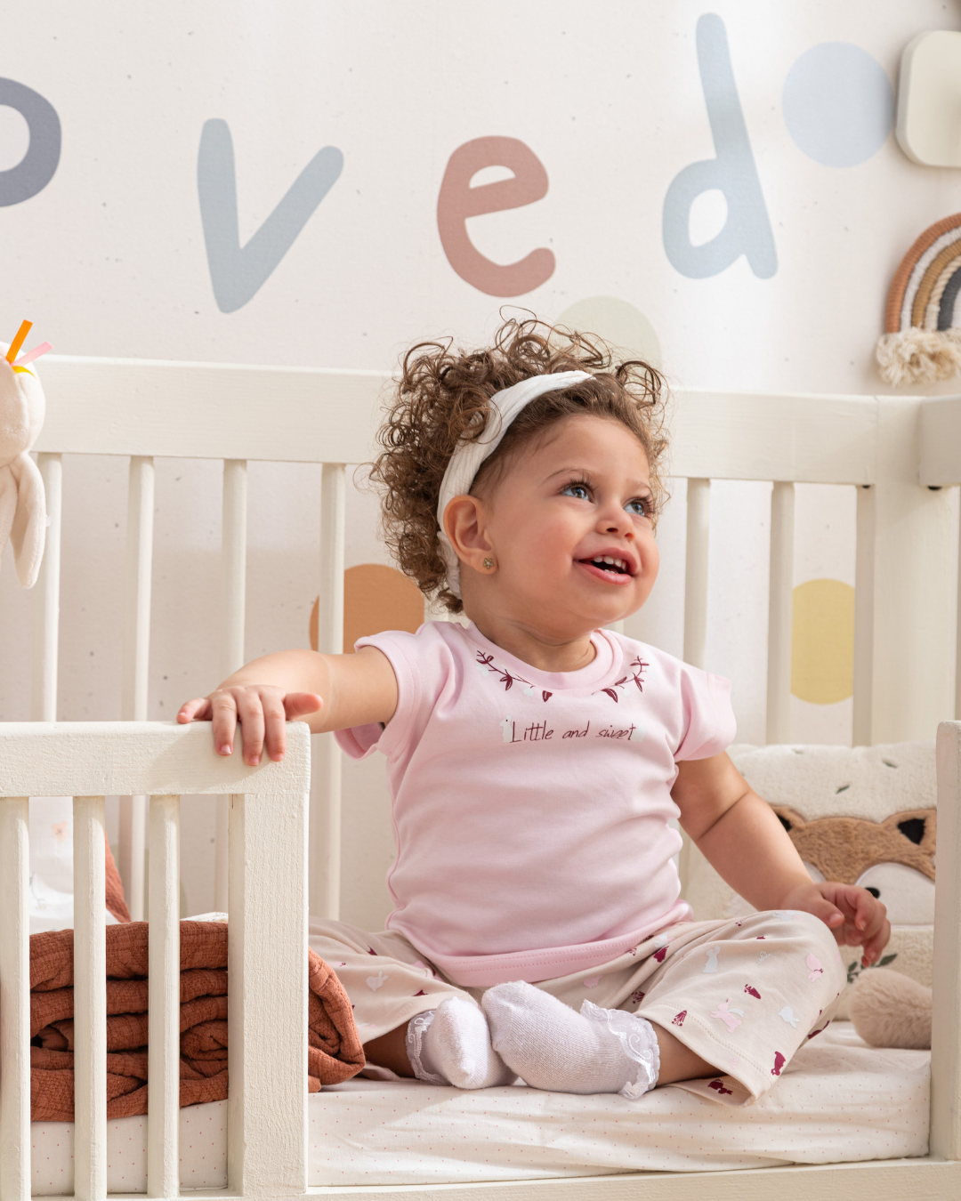 Little and sweet بيجاما بيبي بناتي نص كم و بنطلون قطن
