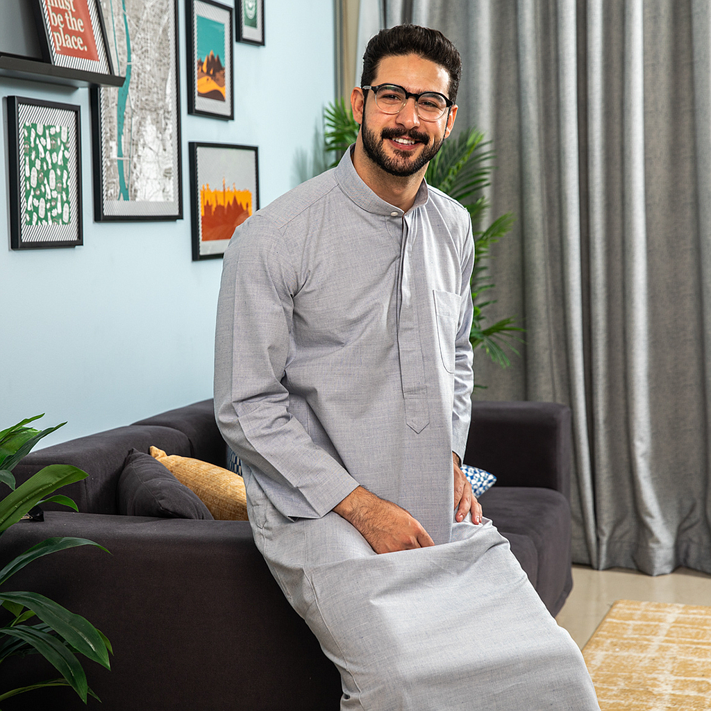 جلابيه رجالي ساده نص ياقه بجيب