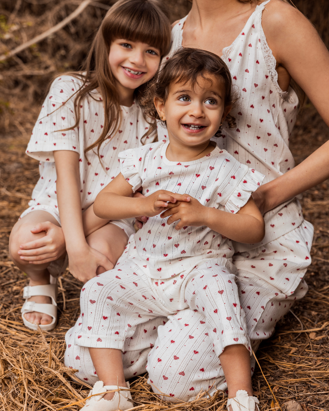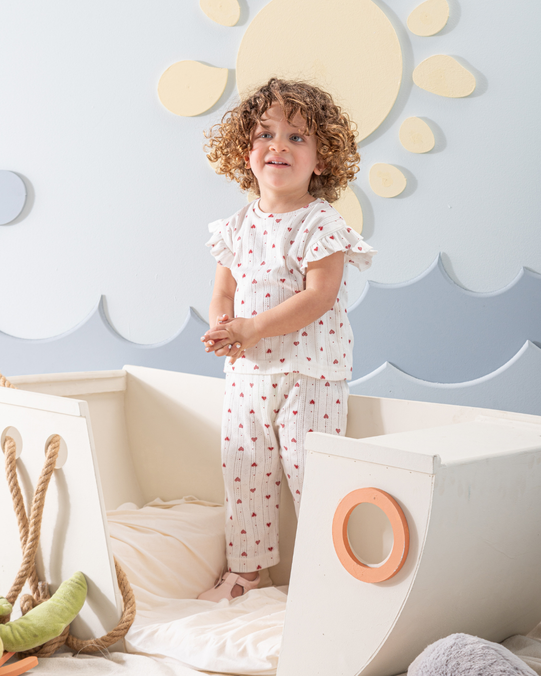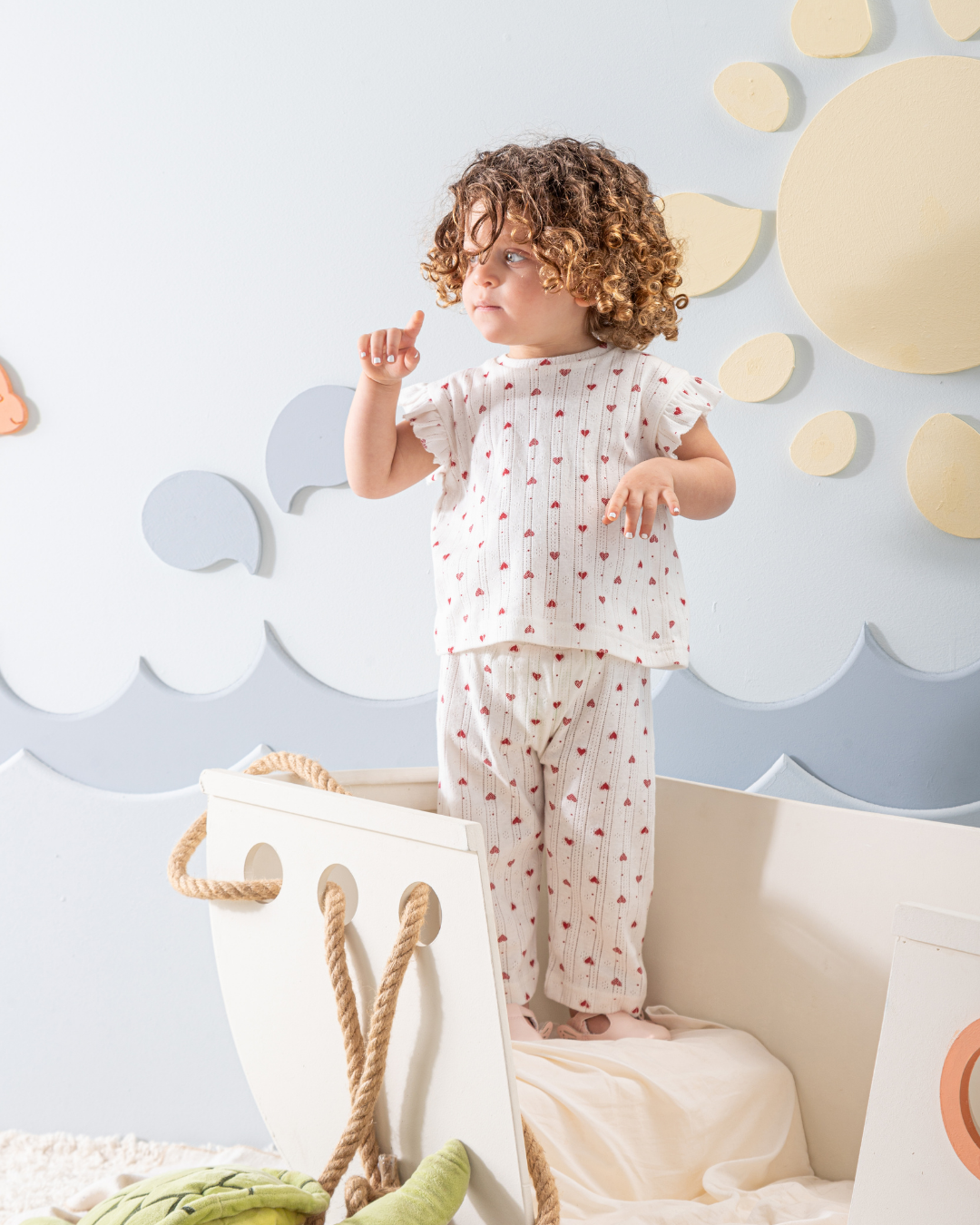Mini hearts baby بيجاما بيبي بناتي كم رافل و بنطلون