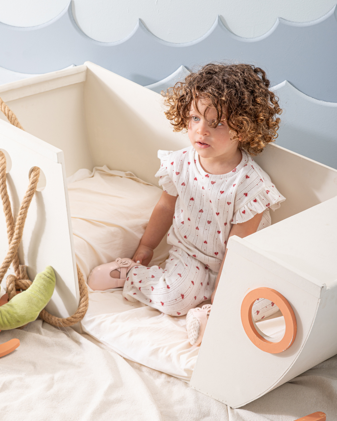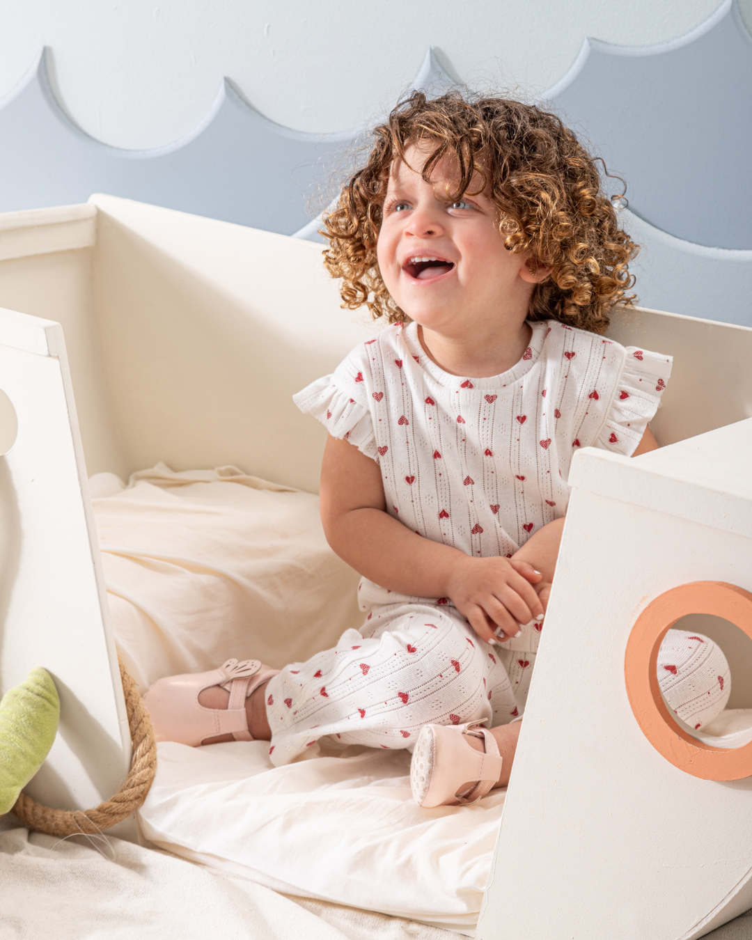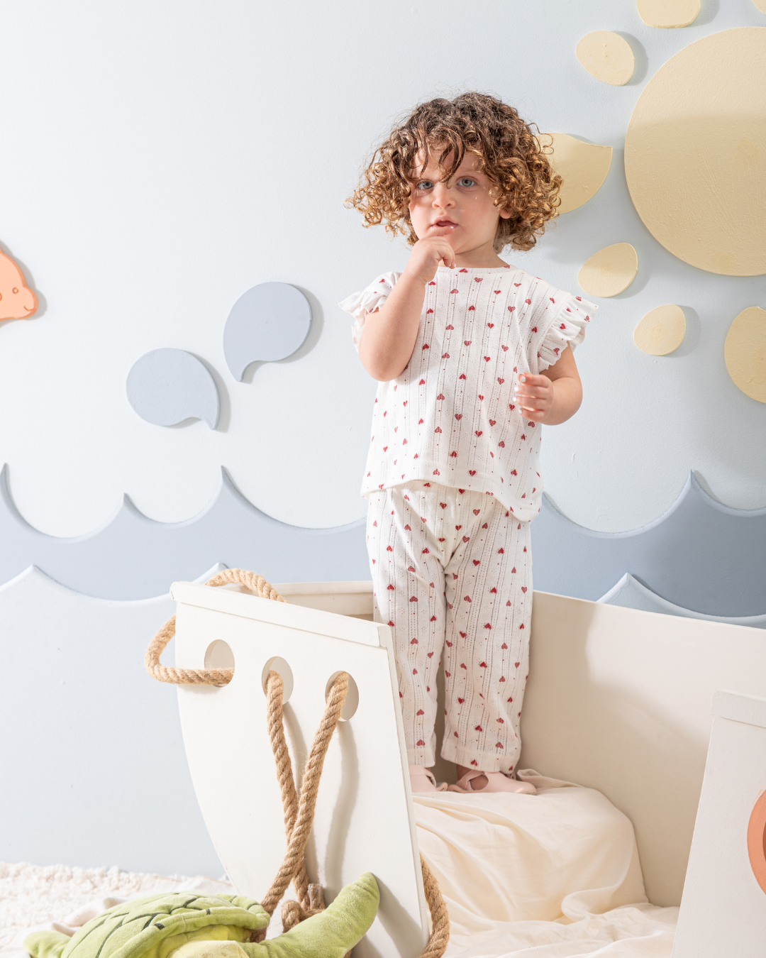 Mini hearts baby بيجاما بيبي بناتي كم رافل و بنطلون