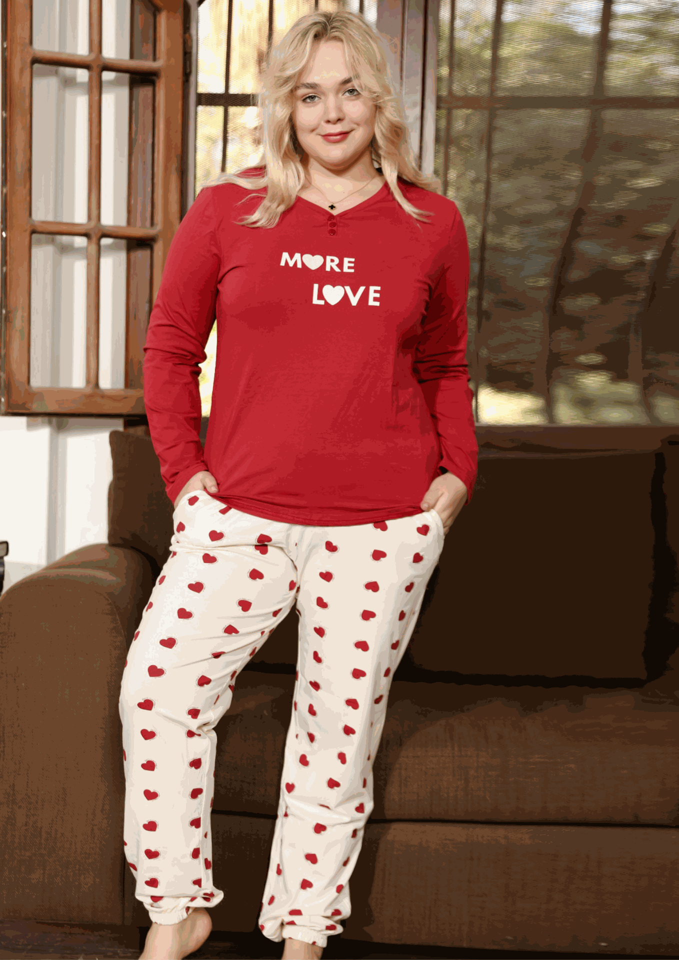 MORE LOVE بيجامه حريمي تيشرت كم وبنطلون مطبوع قلوب