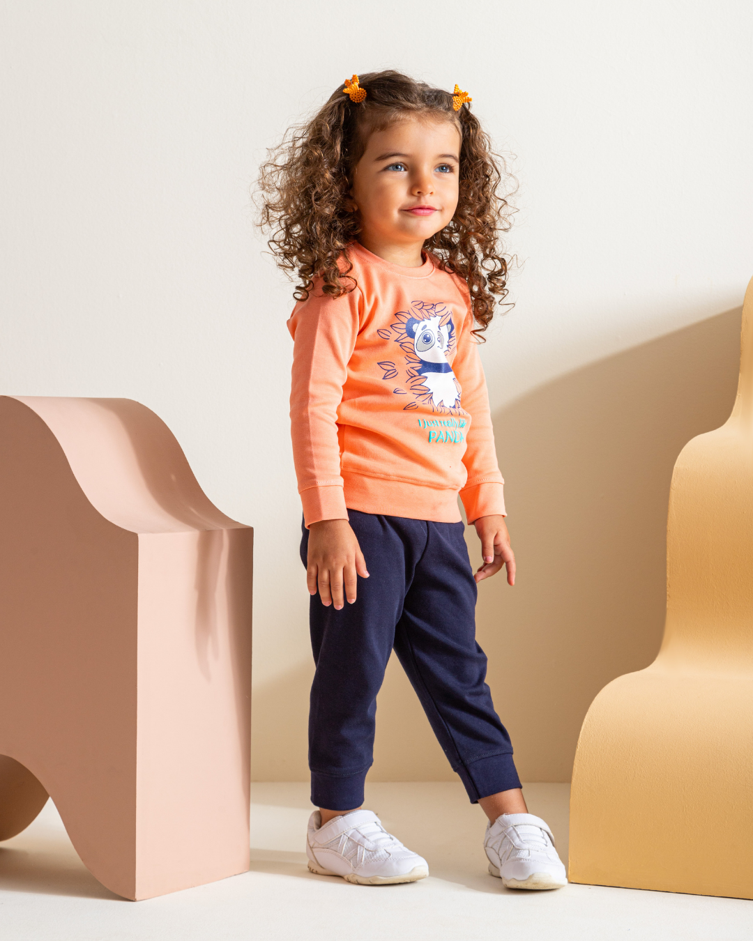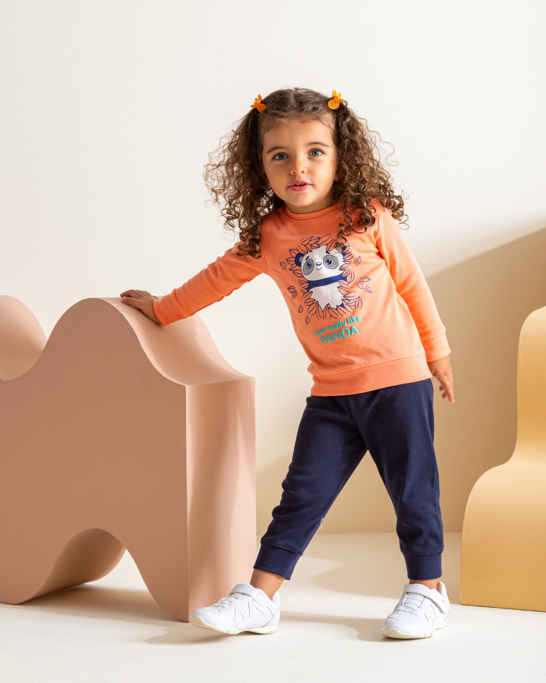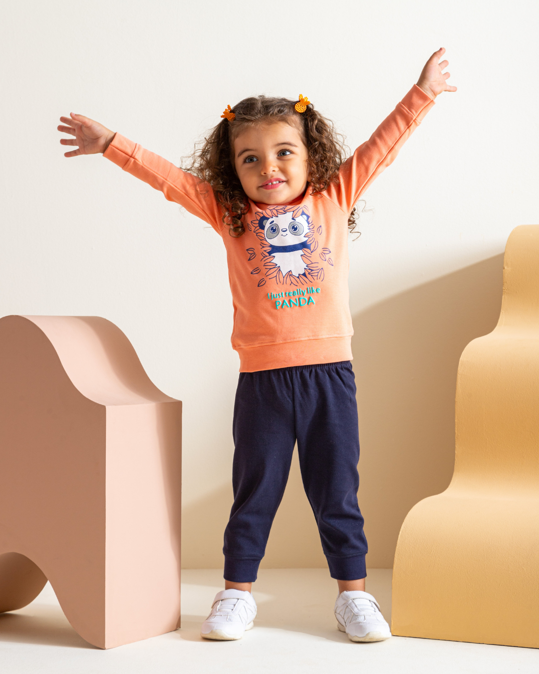 Panda بيجامه بناتي طقم طباعة انترلوك