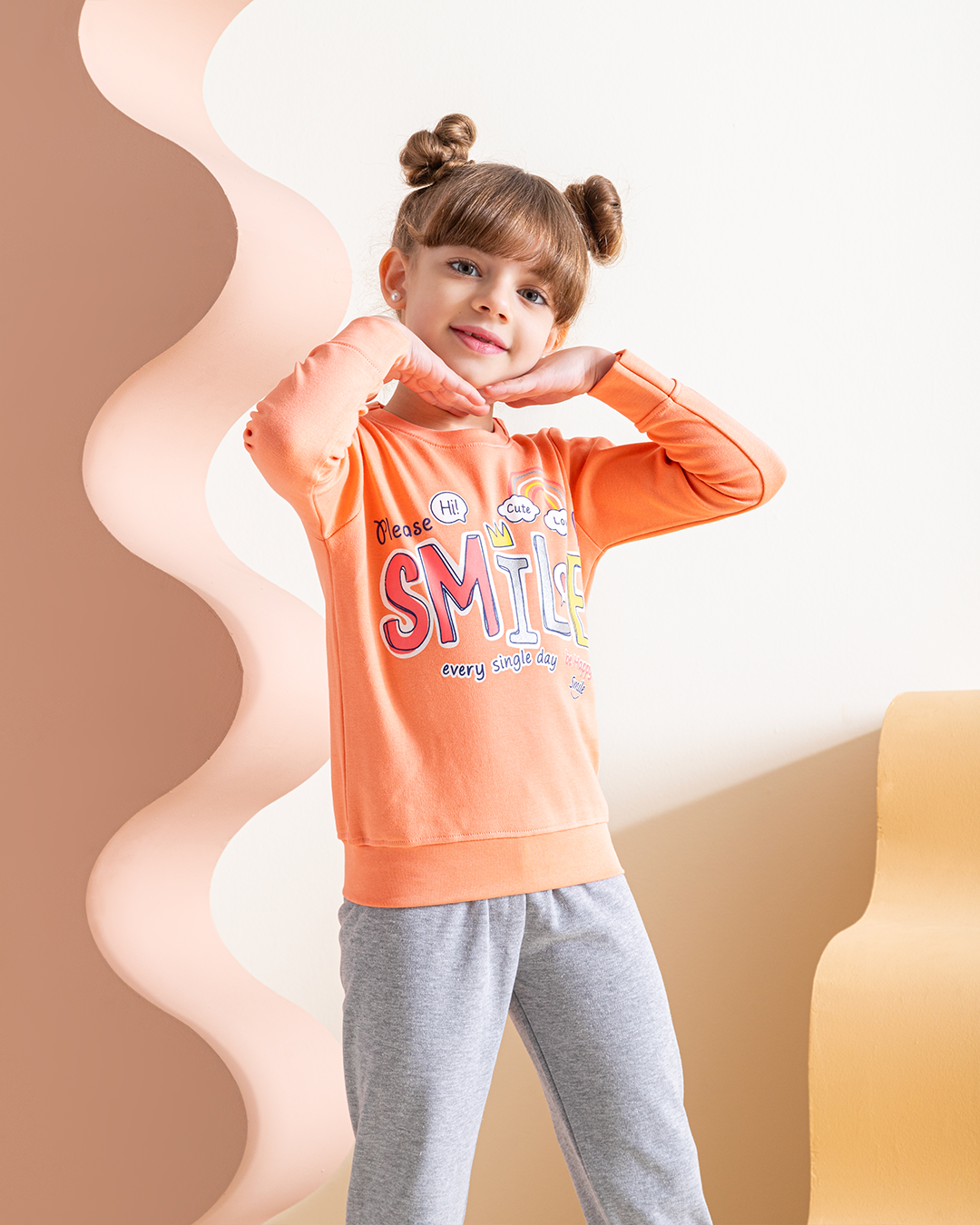 Smile بيجامه بناتي طقم طباعة انترلوك