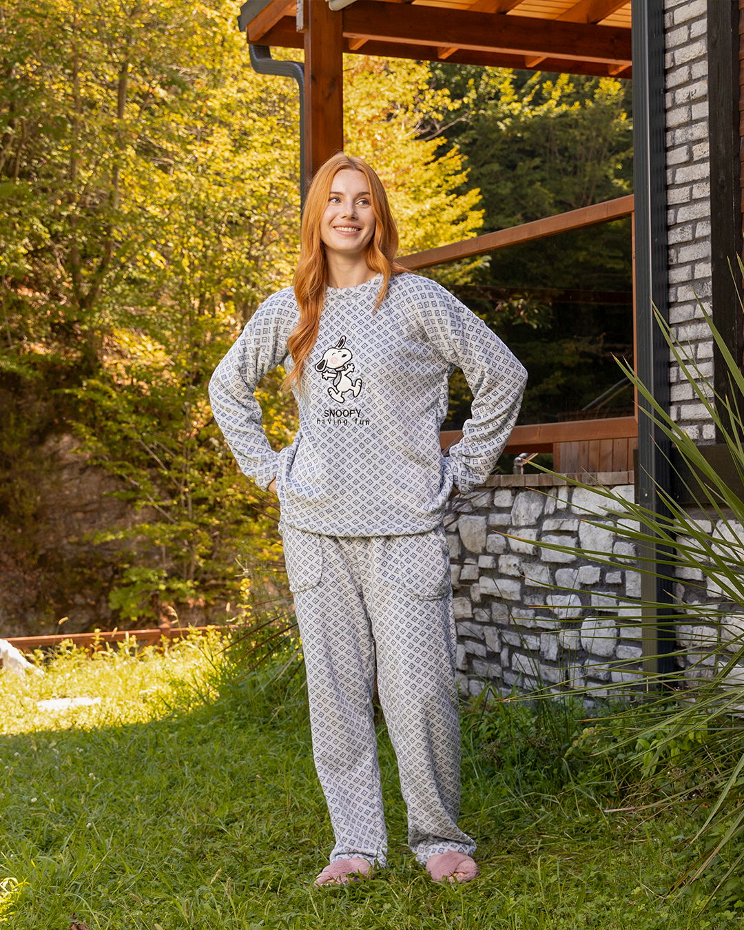 Snoopy having fun  بيجاما حريمي كُم طويل