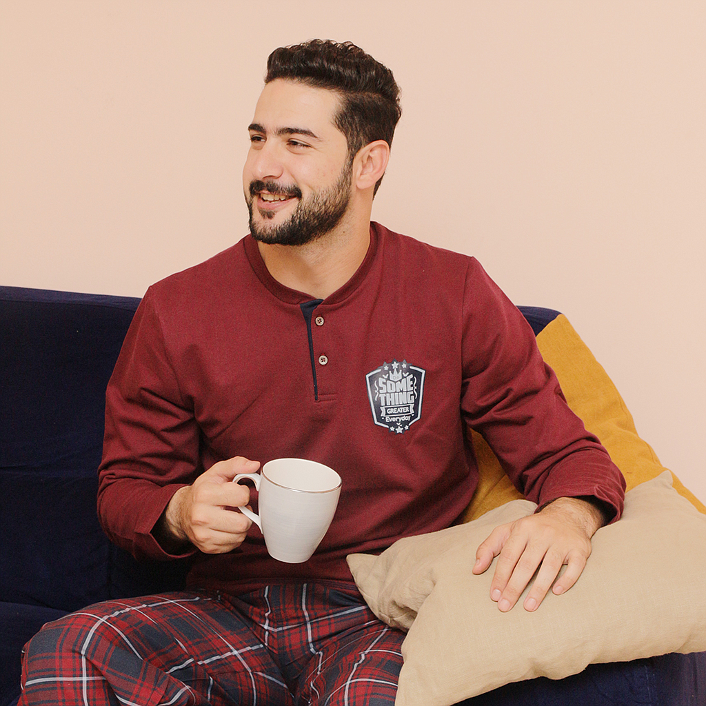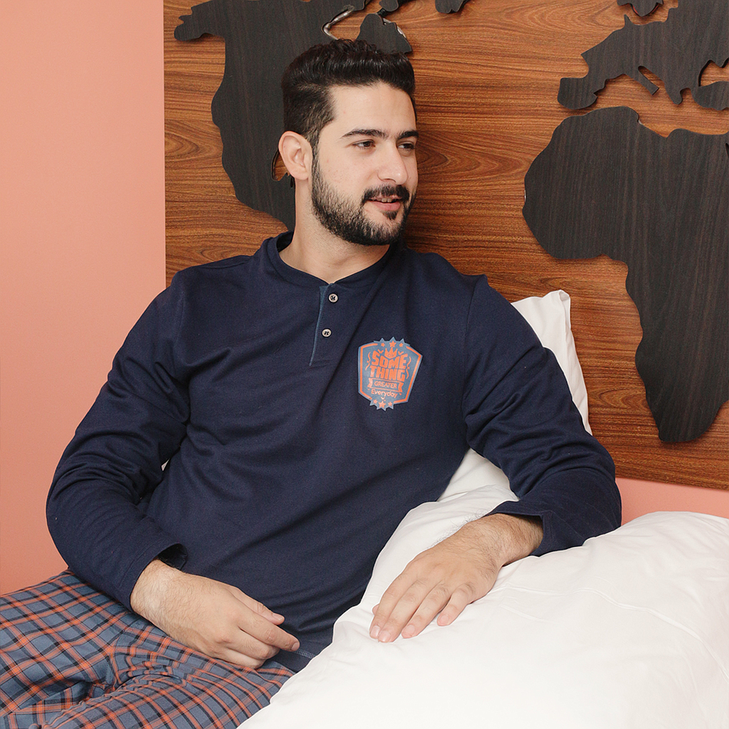 SOME THING بيجاما رجالي بزراير بنطلون نسيج