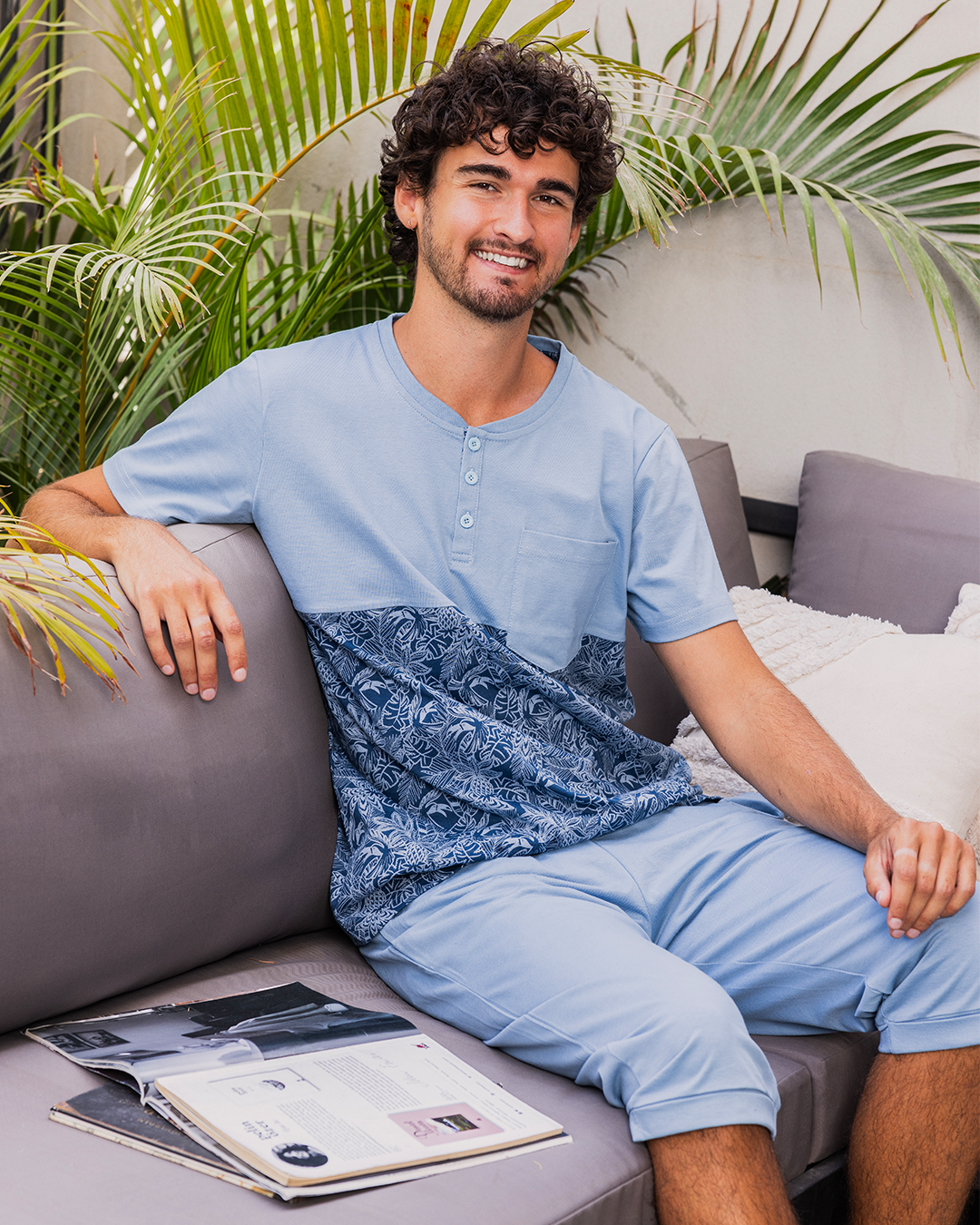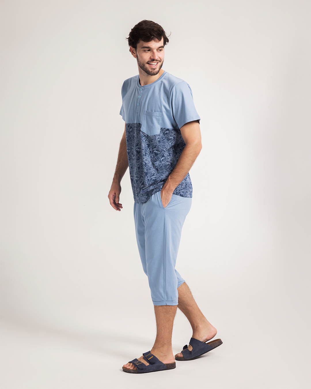 Summer vibes بيجاما رجالي نص كم و بنتكور قطن