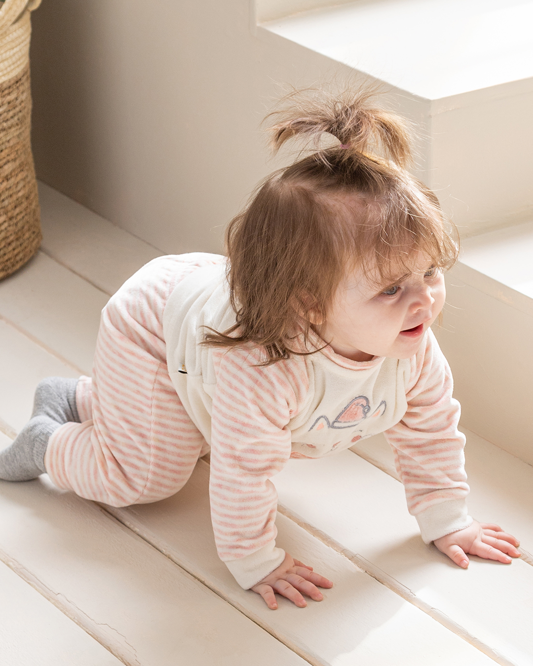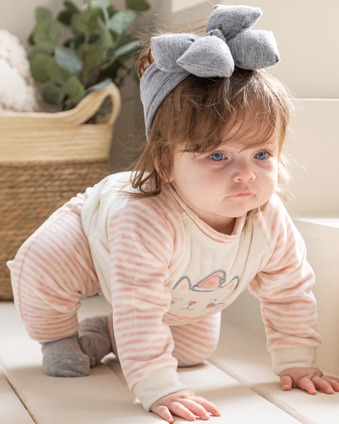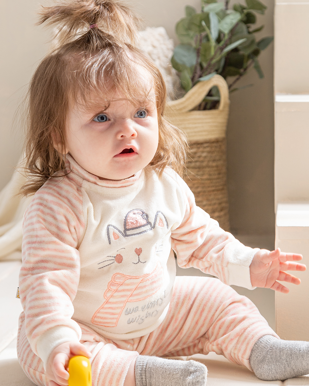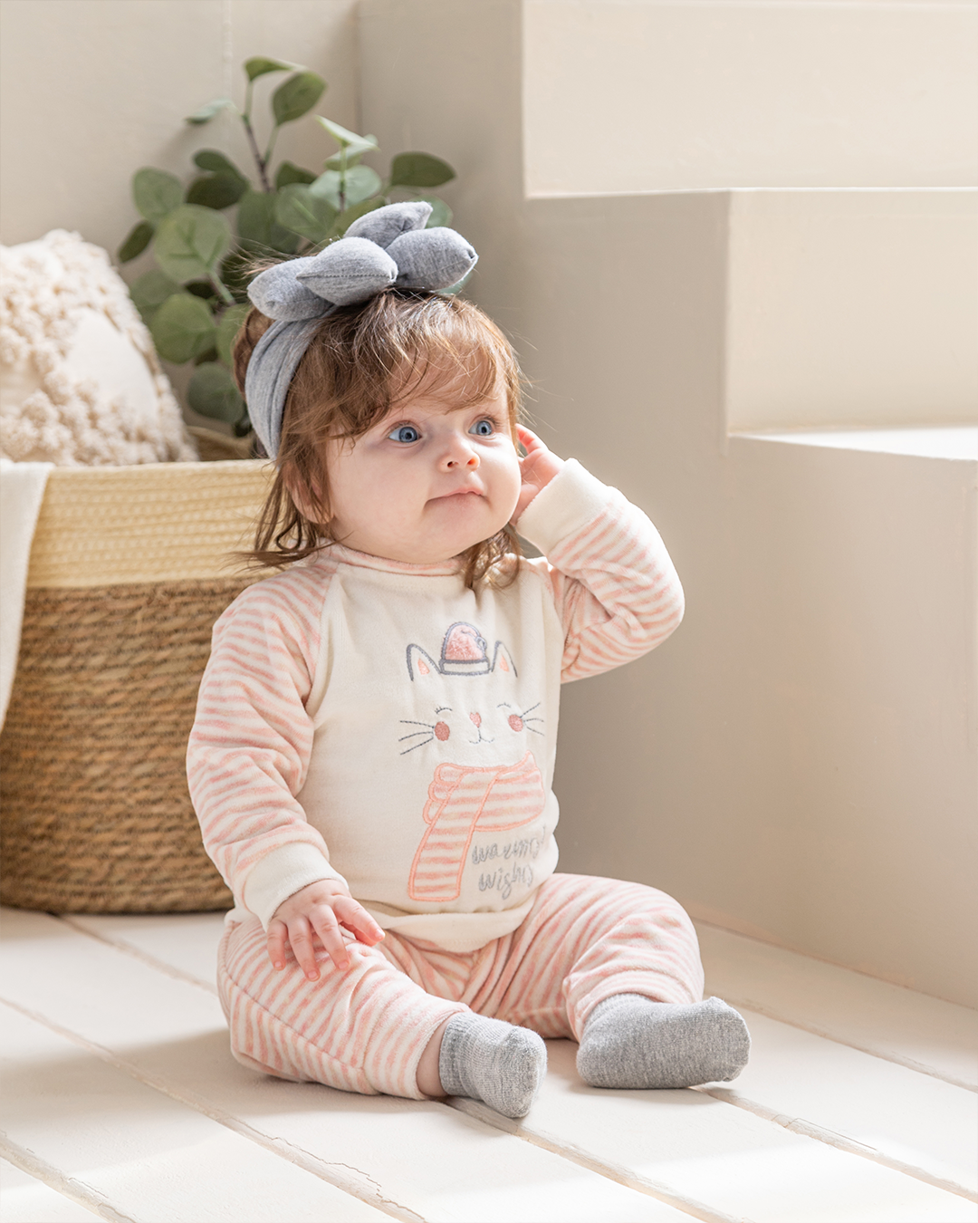 Warmest Wishes بيجامة بيبي بناتي قطة قطيفة سترايب