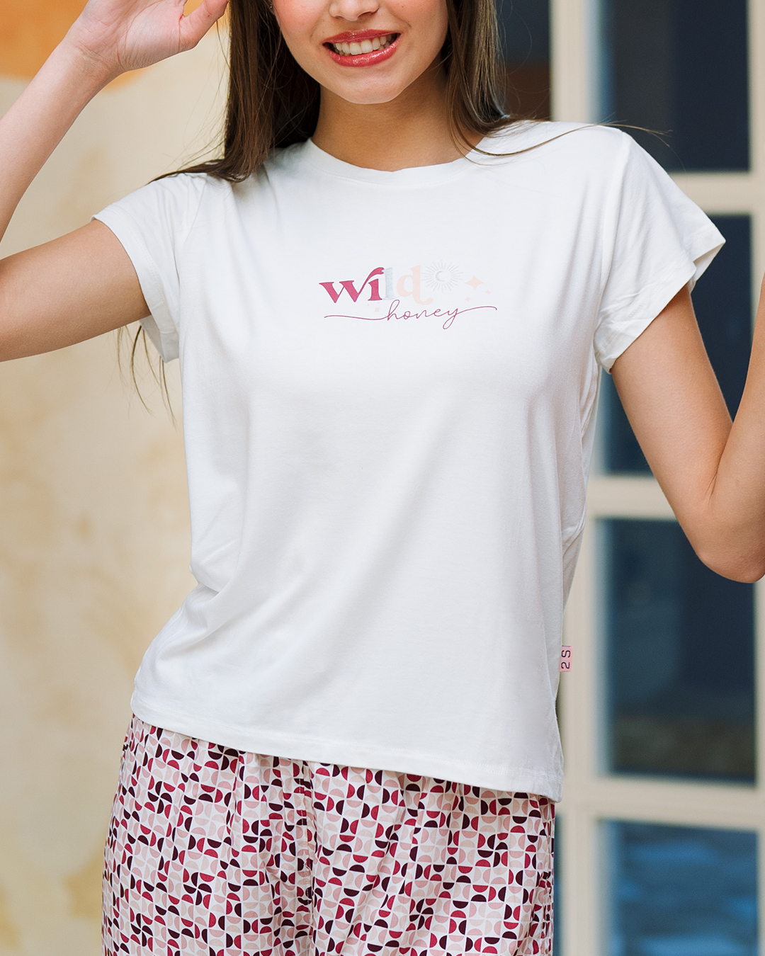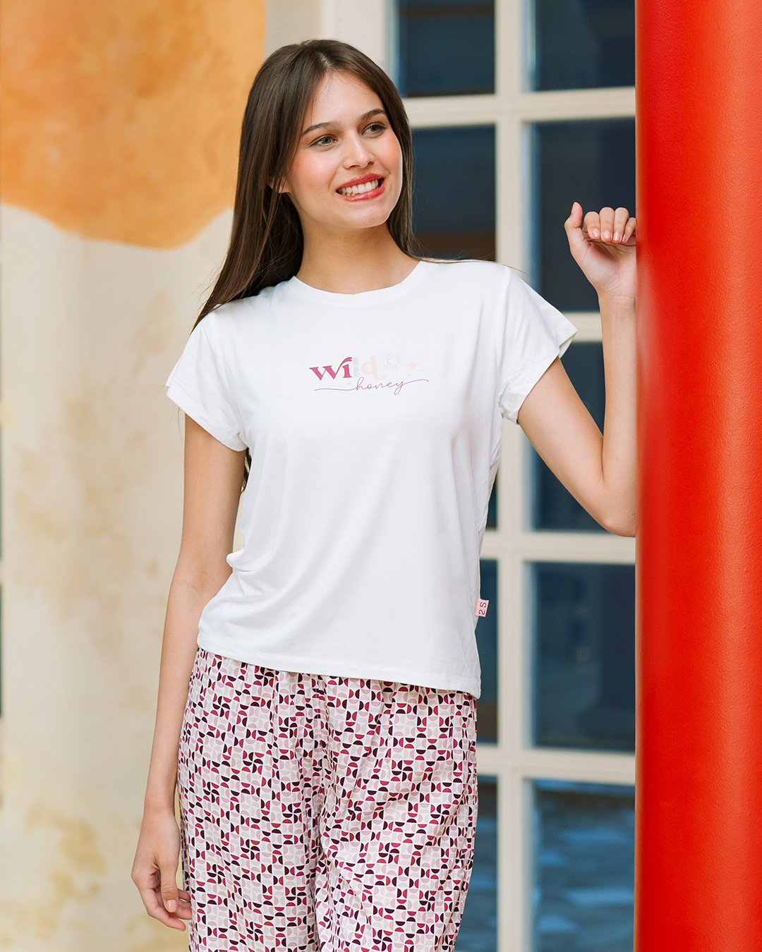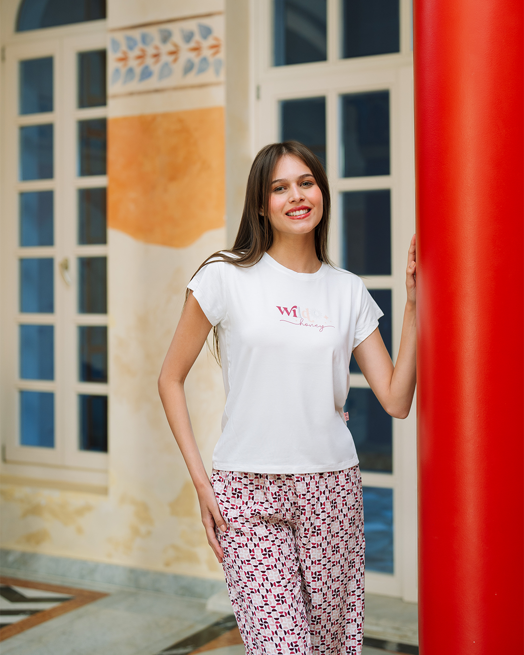 بيجاما بنطلون قطن اشكال هندسيه و توب نص كم
