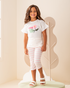 بيجاما نص كم رافل و بنتاكو قطن مع طباعه ورد على الصدر